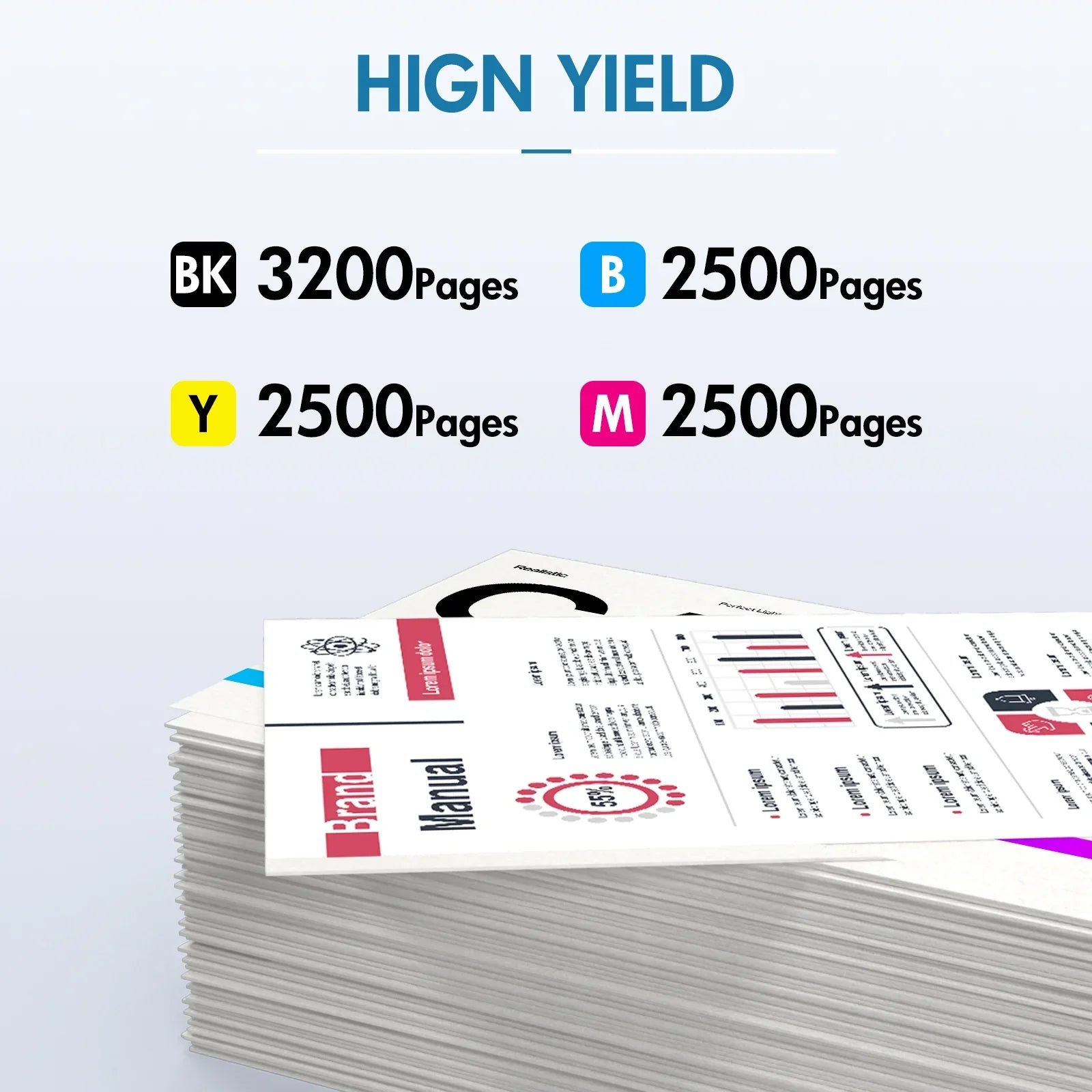 - High Page Yields: 3,200 pages for black toner cartridge and 2,500 pages for color toner cartridge (at 5% Coverage)