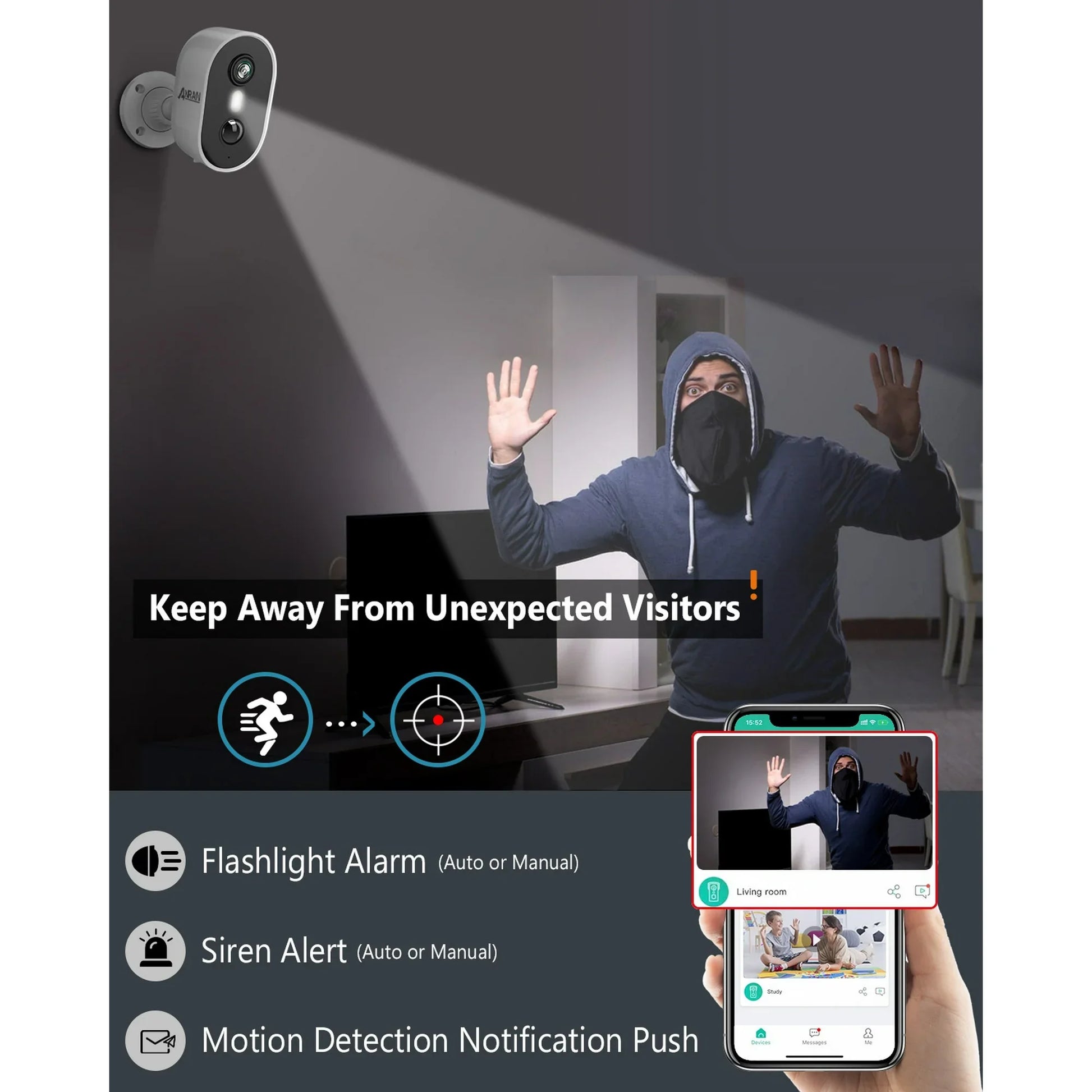 ANRAN Security Camera, Waterproof Wireless Outdoor Camera, 2K PIR Detection Alarm, Rechargeable Battery Powered Home Surveillance Camera with Night Vison, 2-Way Audio