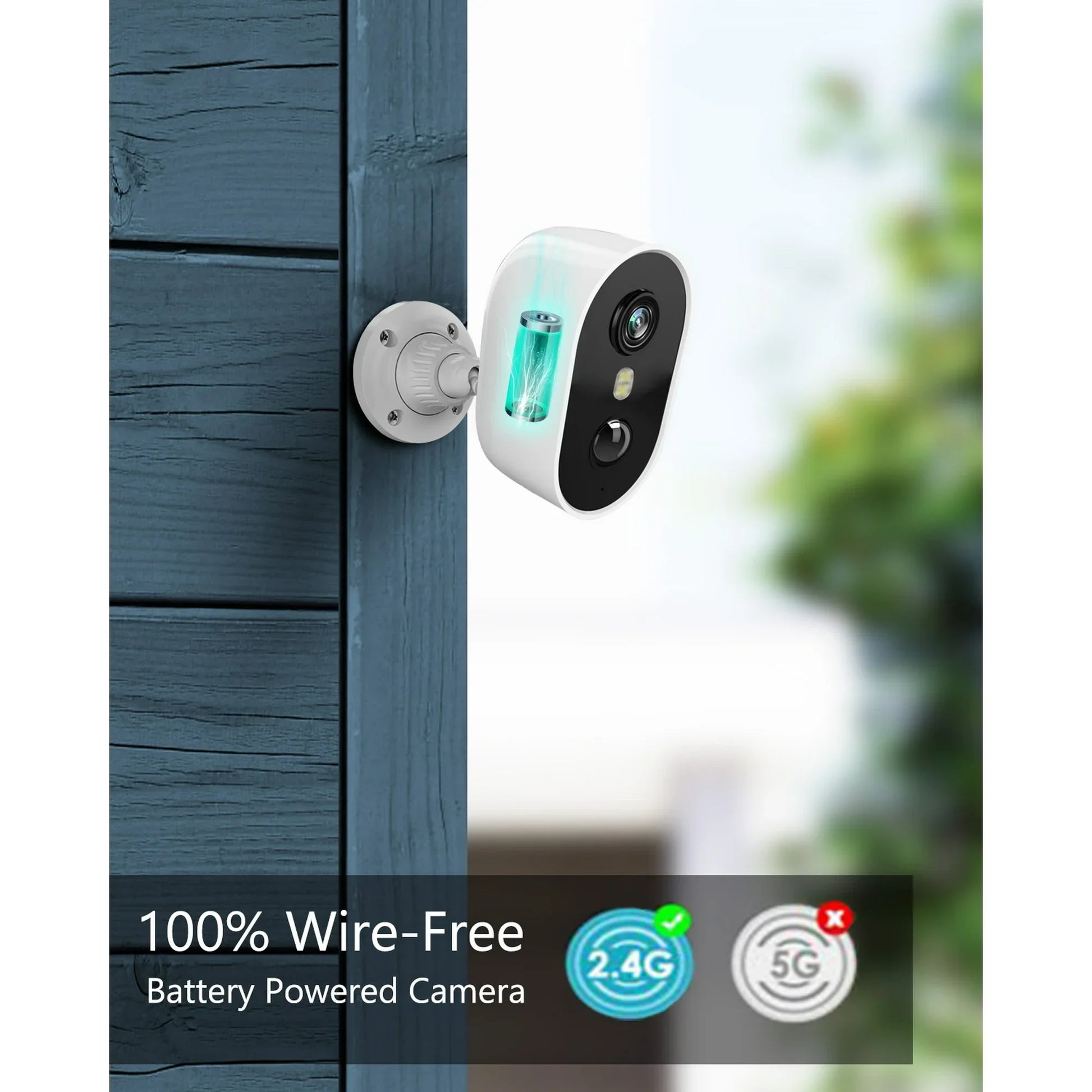 ANRAN 2K Wireless Outdoor Security Camera with Spotlight, Waterproof, PIR Detection, 2.4Ghz Wi-Fi, Rechargeable Battery Powered Home Surveillance Camera with Color Night Vision, 2-Way Audio, White