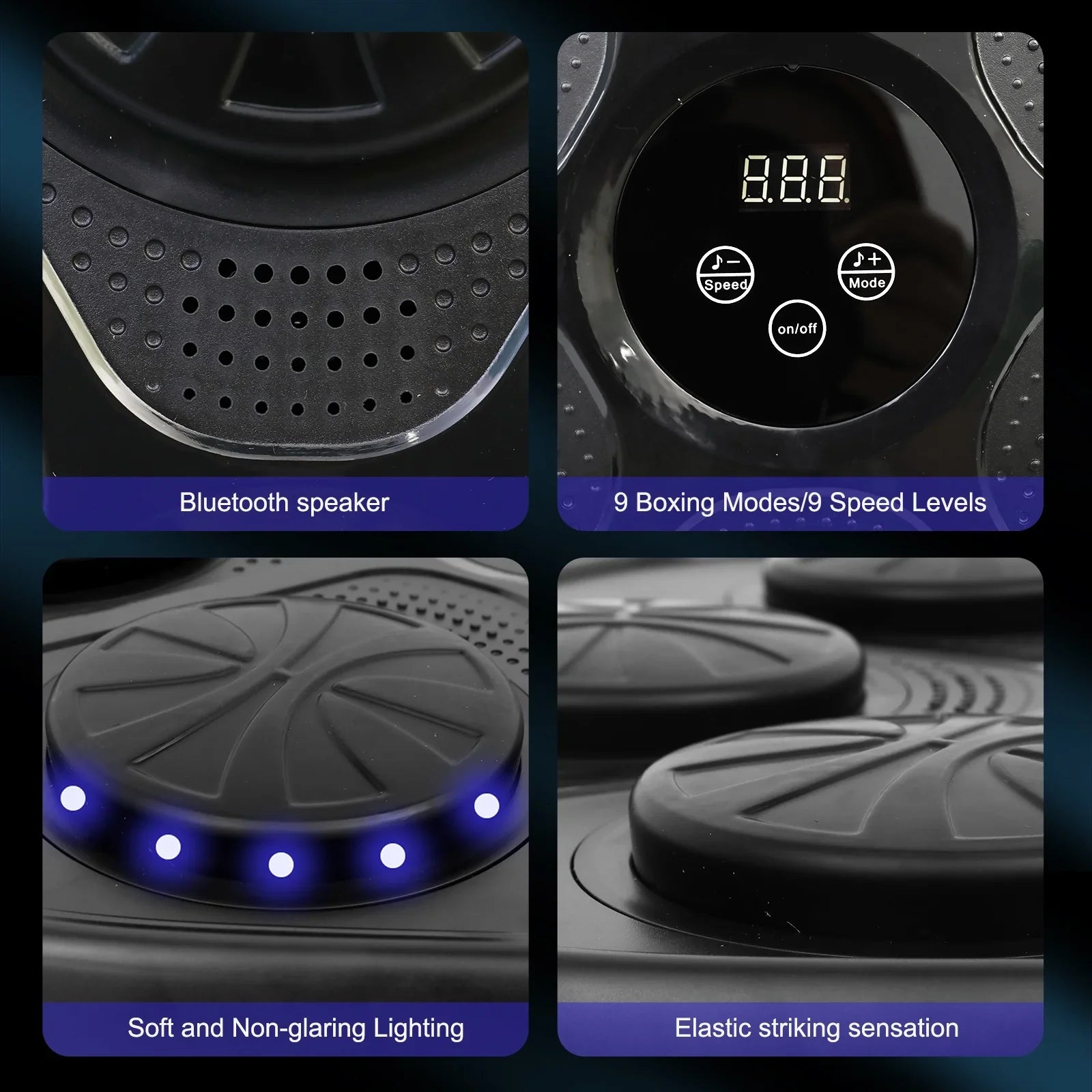 Revolutionize your fitness routine with the Music Light Boxing Equipment! With every punch, dazzling LED lights illuminate like stars, accompanied by dynamic music through Bluetooth connection, immersing you in rhythm. Featuring nine training modes and speed adjustments, it caters to diverse fitness needs, whether for basic physical fitness or professional reaction training. The wall-mounted installation is convenient and flexible, allowing your personal gym to be ready anytime, anywhere. Experience unrestricted workouts with the Music Light Boxing Machine!