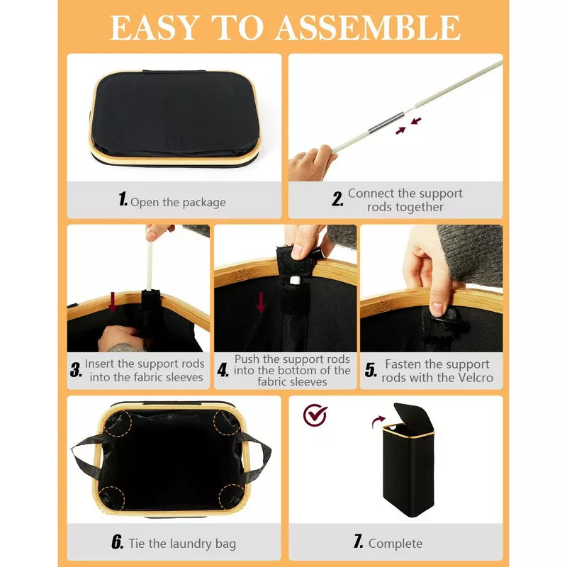 Space‑saving & collapsible – four detachable rods let each hamper fold to only 2 in high for quick storage or travel.