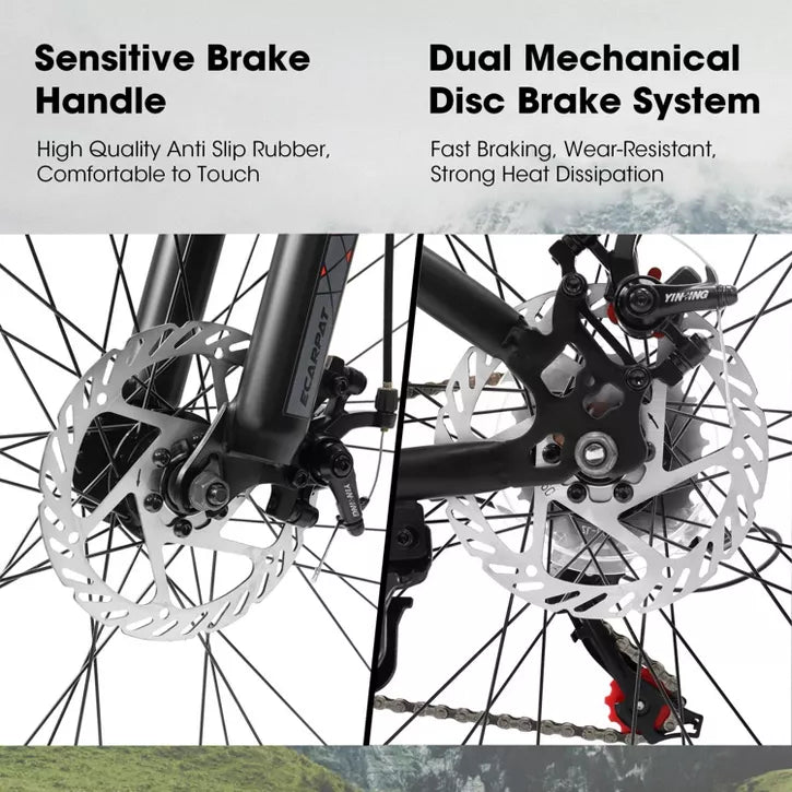 π Powerful Disc Brakes β Equipped with reliable front and rear disc brakes, ensuring consistent stopping power and safer rides in all conditions.
