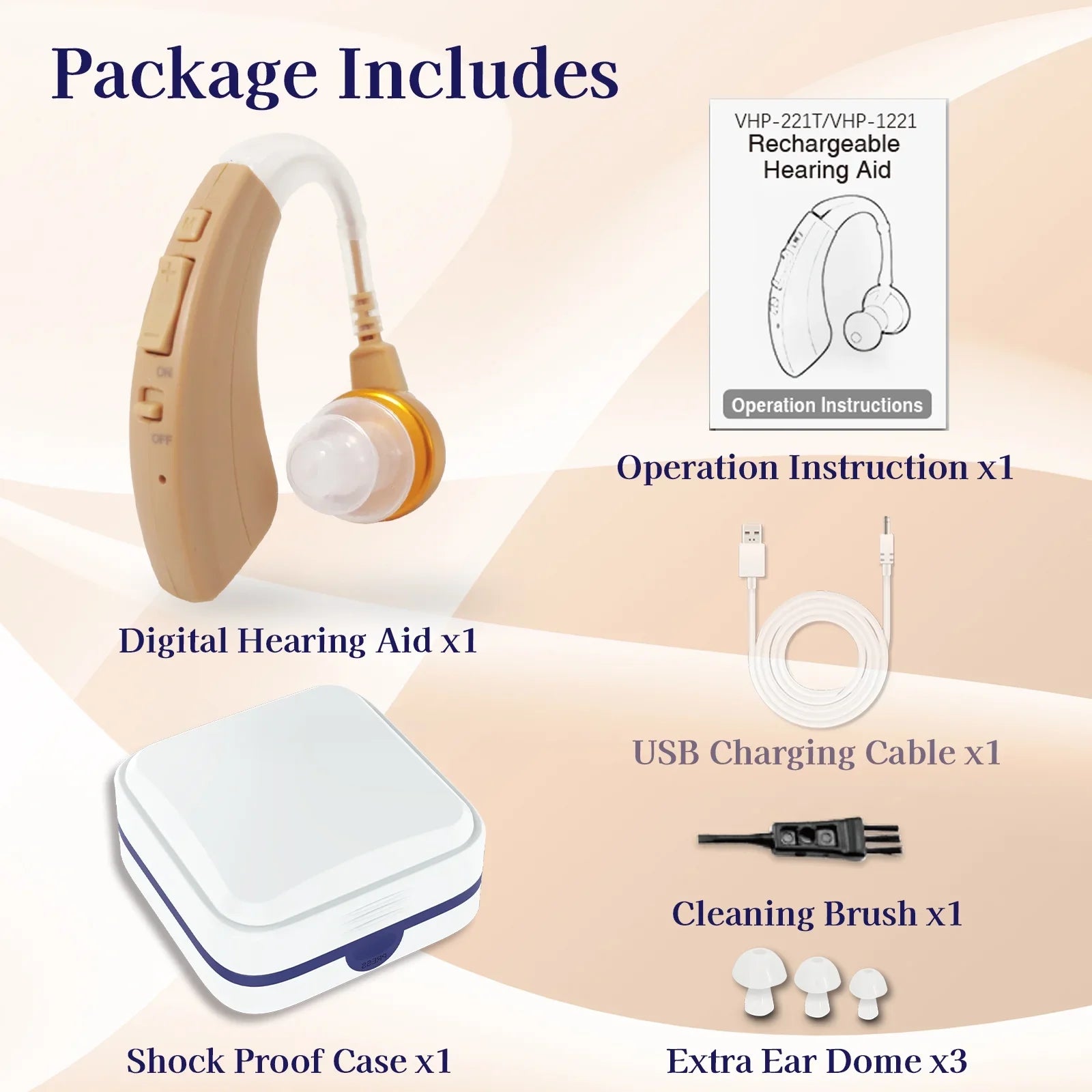 - Full Digital Circuitry with Dual Mode Selection: Designed with advanced full digital circuitry, this hearing aid offers two listening modes to adapt to different sound environments effortlessly.
