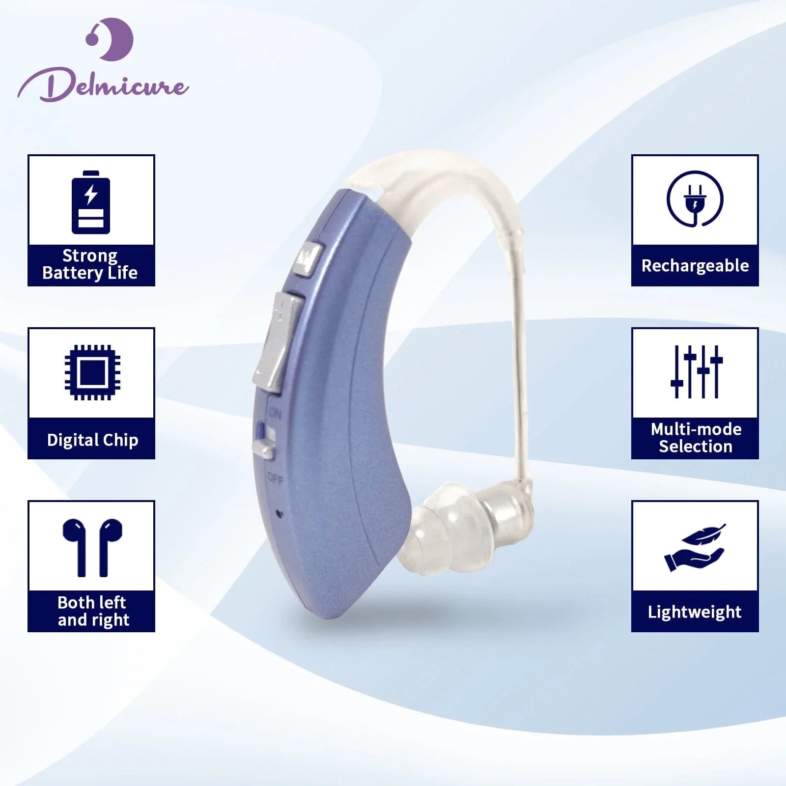 Delmicure Hearing Aid VHP-1222 for Seniors, Rechargeable Hearing Amplifier for Adults, Mini Speaker, Single Digital Sound Device (Blue)