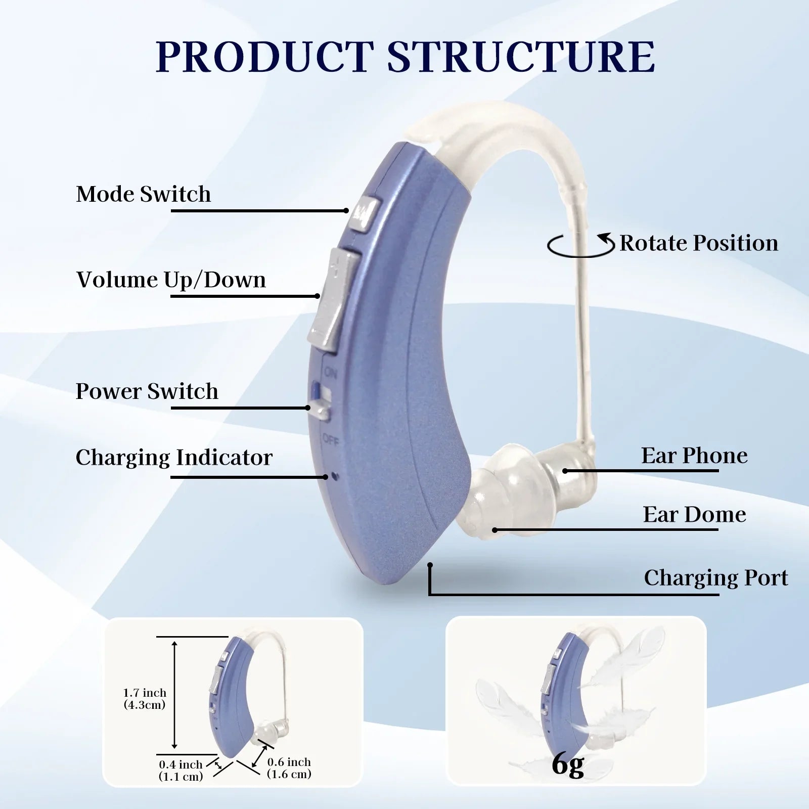 - Full Digital Circuitry with Dual Mode Selection: Designed with advanced full digital circuitry, this hearing aid offers two listening modes to adapt to different sound environments effortlessly.