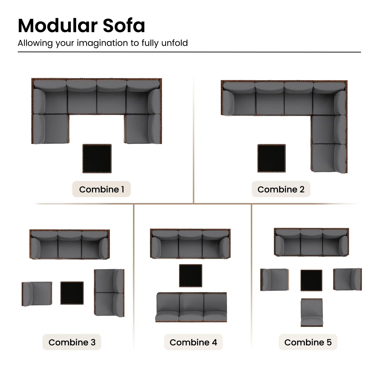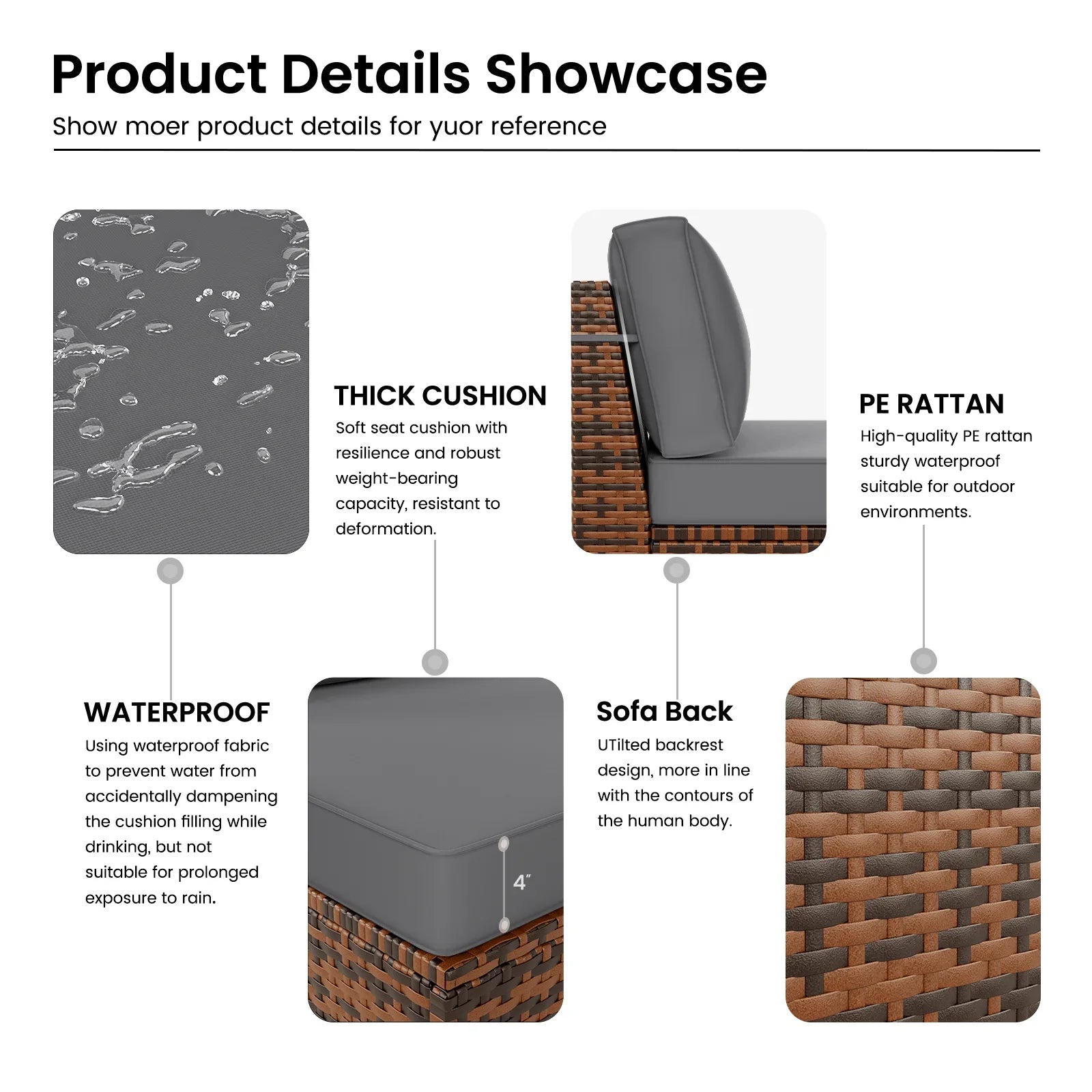 - ¡¾MODULAR SOFA¡¿ECOPATIO Outdoor sectional Set features a modular design that allows you to use your creativity and freely combine the sofas. It is also able to be flexibly placed according to the placement. Whether on the outdoor terrace, by the pool, in the garden, in the backyard, on the porch or on the balcony, these stylish sofas can be placed in the appropriate way. Creating an ideal space for relaxation, it makes it easy for friends and family to gather and spend quality time together.