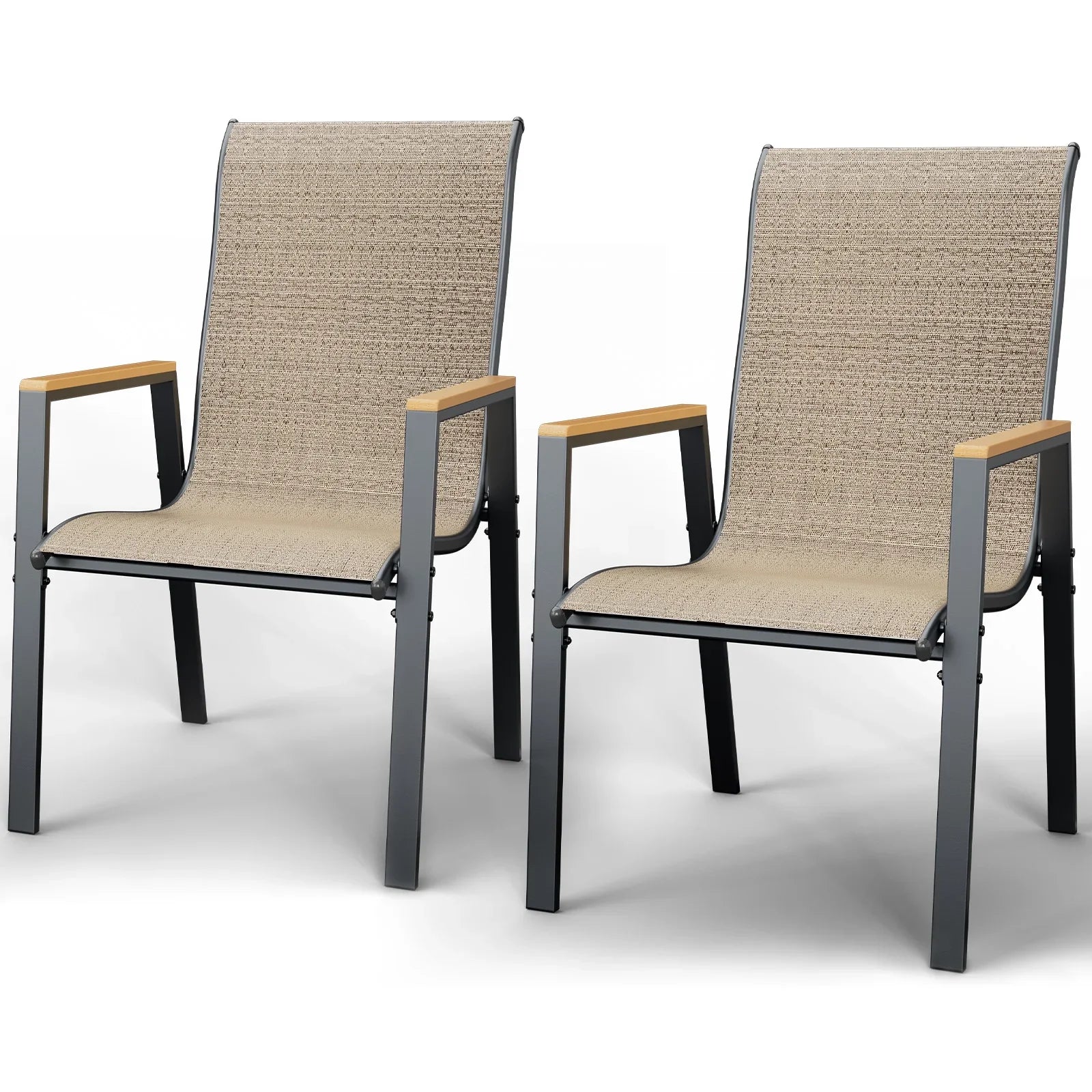 ECOPATIO Outdoor Patio Dining Chairs Set of 2, Stackable Steel Chairs with Armrest,Durable Frame for Lawn Garden Backyard, Khaki