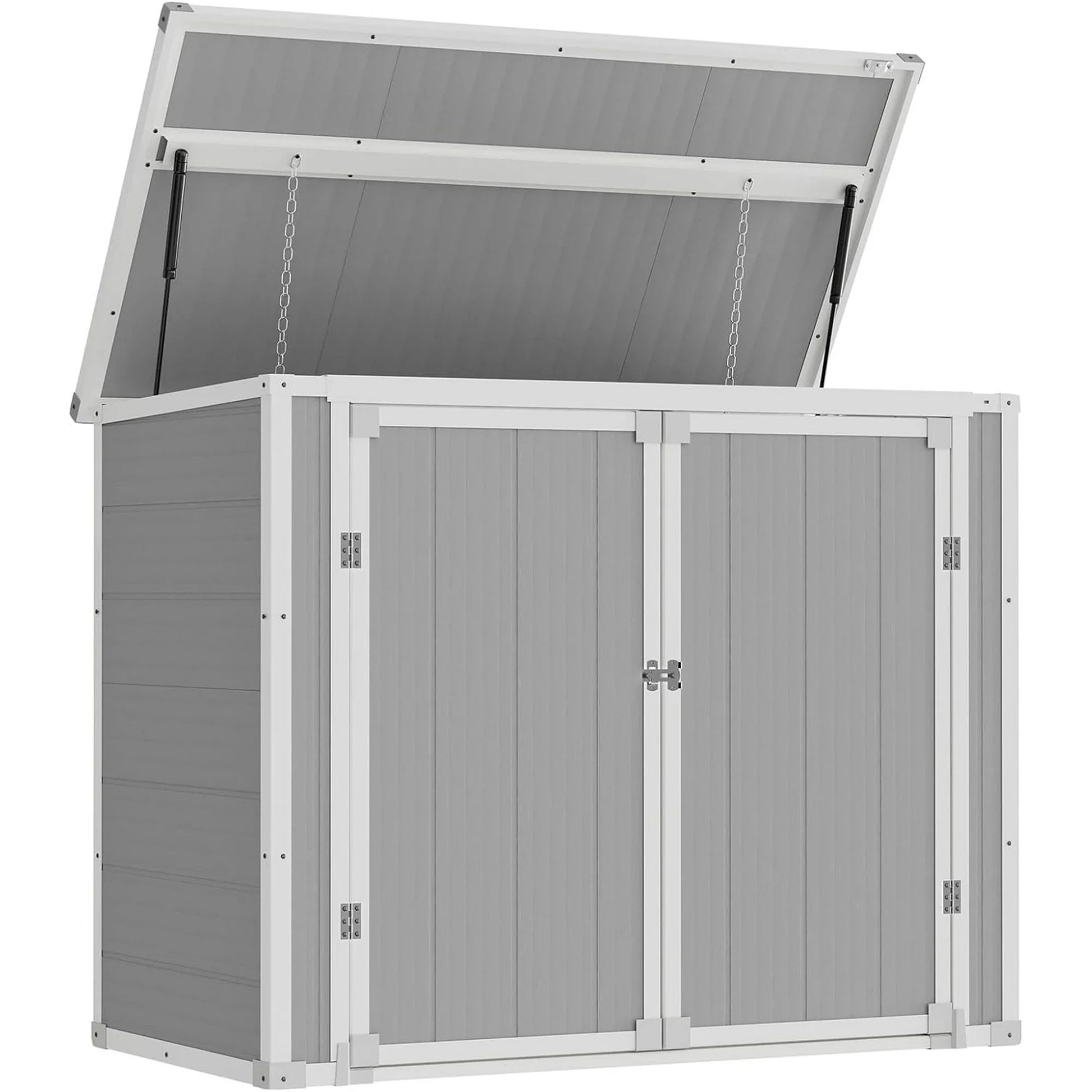 - All-Weather Resistant: Constructed from weatherproof resin, this storage shed offers UV protection and is suitable for all-weather use It resists rust, rot, and discoloration, ensuring easy cleaning and maintenance