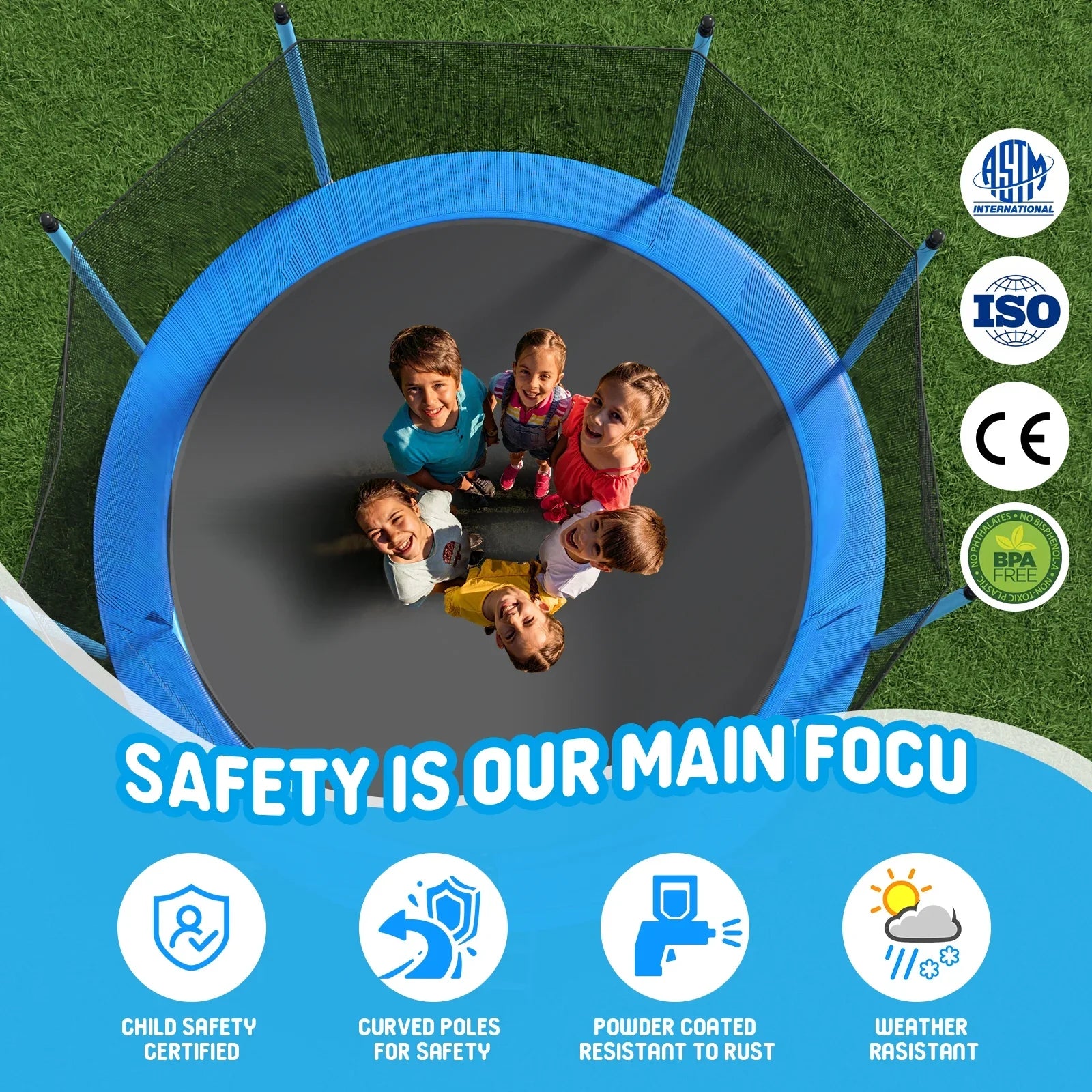 ¡¾Active & Interesting¡¿Bring a brand new way of entertaining your energetic and tireless children. Let safe jumping exercise improve kids' coordination, balance, and cardiovascular health. Our trampoline is equipped with an inner type safety enclosure net and can separate kids from the outer safety pole, which is an excellent choice for your exclusive amusement park in your backyard.