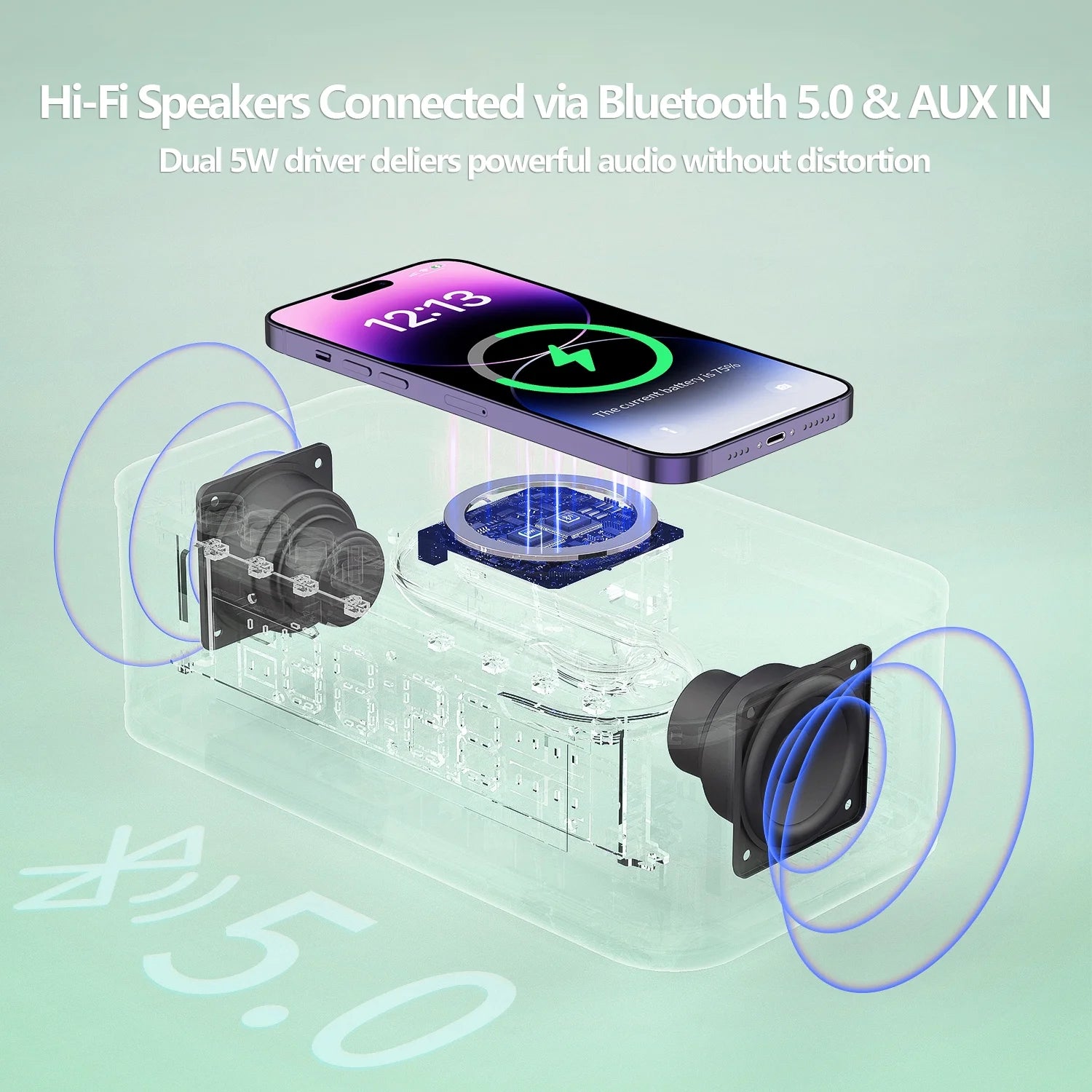 - The wireless charging pad on top of the clock provides 7.5W of power to charge your compatible devices, while the USB port offers an additional 5W of wired charging.
