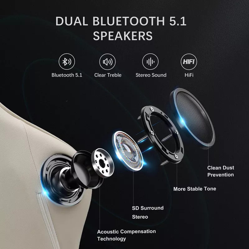【5.1 Compatible Bluetooth Gaming Chair】Original designed with dual Bluetooth 5.1 speakers. The surround sound system brings out the best in your entertainment, delivering remarkable and richly detailed stereo sound out loud in solid bass and clear treble. Connect it to your smartphone, tablet or other Bluetooth-enabled devices, and enjoy music, mobile game or movie with thrilling, cinema-like sound from your gaming chair.
