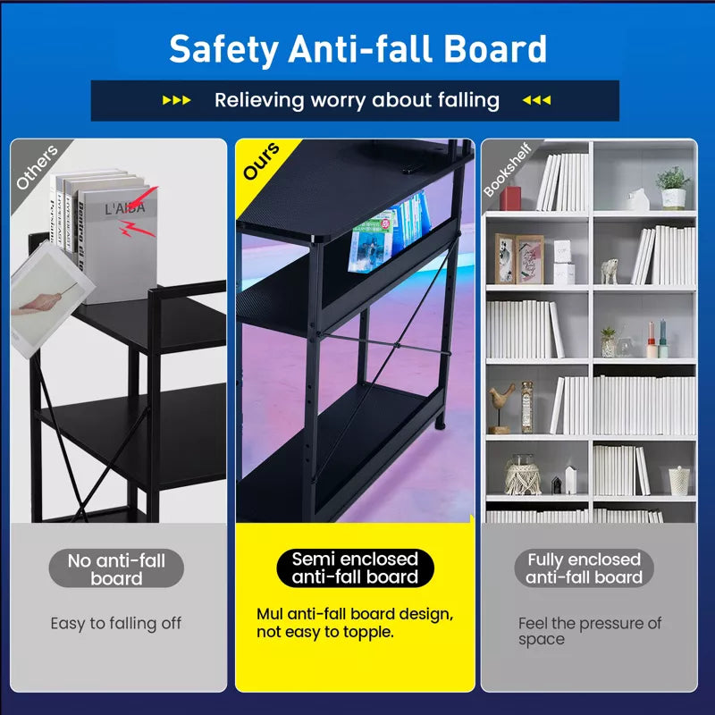 Spacious & Functional: Upgraded L-shaped desk with 2 drawers, rounded corners, a carbon fiber look, wire grommet, and anti-fall panel.