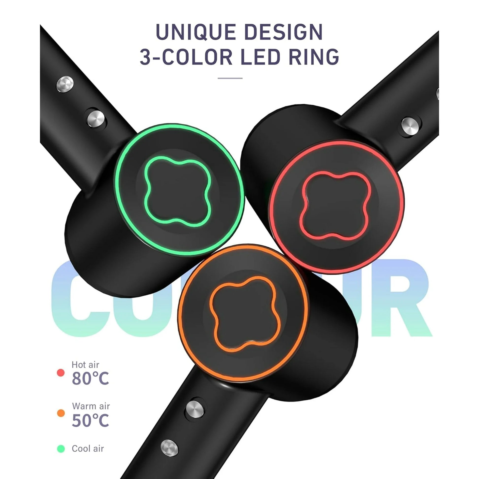 - Intelligent Temperature Control: professional hairdryer measures the air temperature over 100 times per second and regulates the heat through a high performance chip control system. Avoid overheating damage to your hair and protect your hair. Our hair dryer has 3 different LED lights built in, and you can turn the LEDs into different colors by switching the heat button. Red means hot air, yellow is warm air and green is cool air. Enjoy blow-drying your hair in comfort!