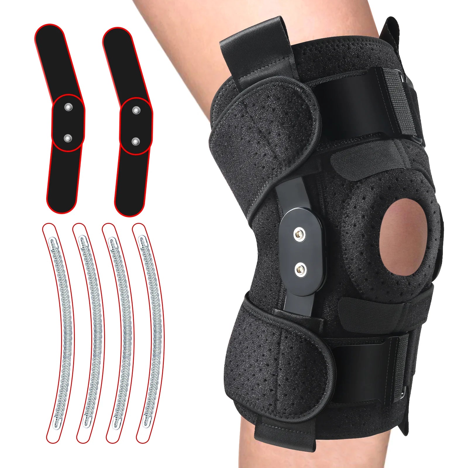 ONE SIZE FITS MOST: Easily detachable dual aluminum hinges, coupled with side stabilizers, offer flexible, customized support for every scenario. The versatile design allows this knee brace to fit on either knee so you can use it as a left or right knee brace.