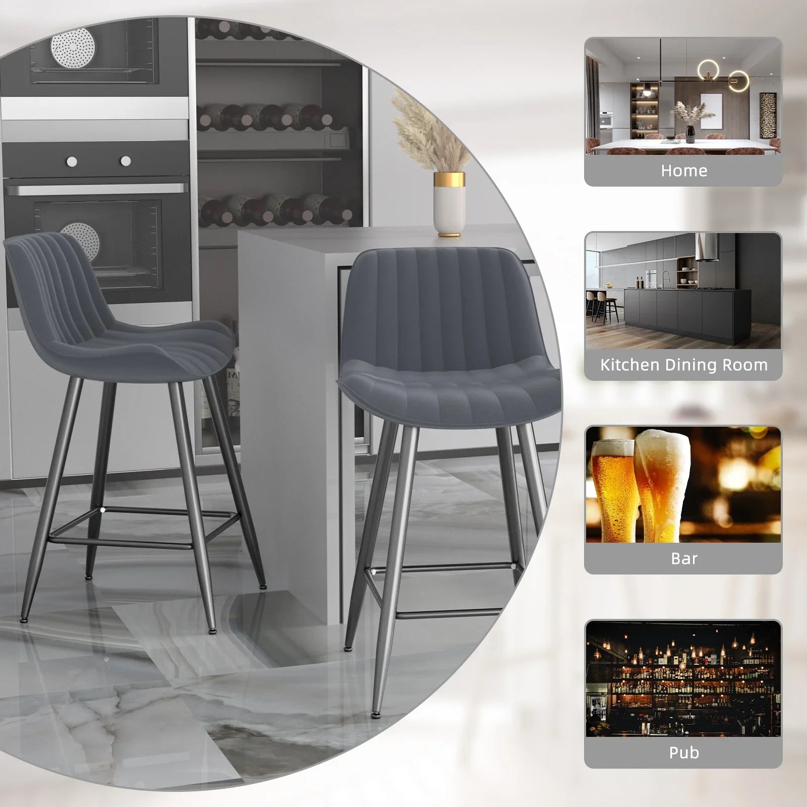 - Velvet Bar Stools:The height barstools, counter height bar stools' seat and back are upholstered in skin-friendly leather, which has a delicate touch and so easy to clean. HomeZeer modern counter height bar stools with back has a exquisite workmanship and tight stitching.