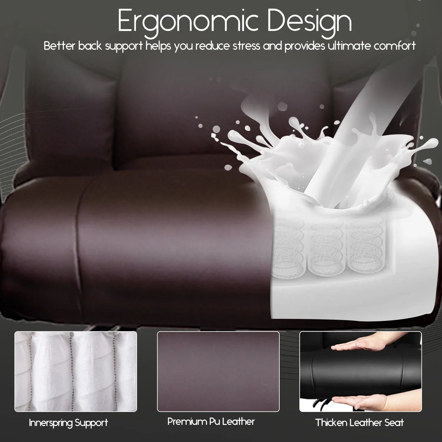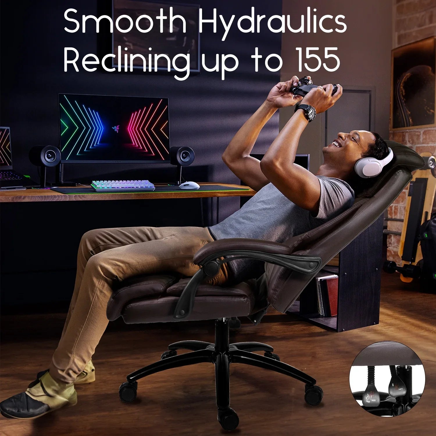 HomeZeer Big and Tall Office Chair, Pu Leather Executive Chair High Back Office Desk Chairs 400lbs for Heavy People, Adult Brown