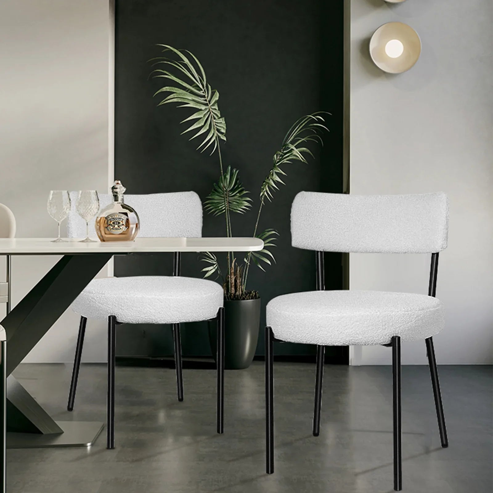HomeZeer Dining Chair Set of 2, Modern Boucle Upholstered Dining Chair, Dining Room Round Seat with Curved Backrest, White Dining Room Chairs with Black Metal Legs for Kitchen