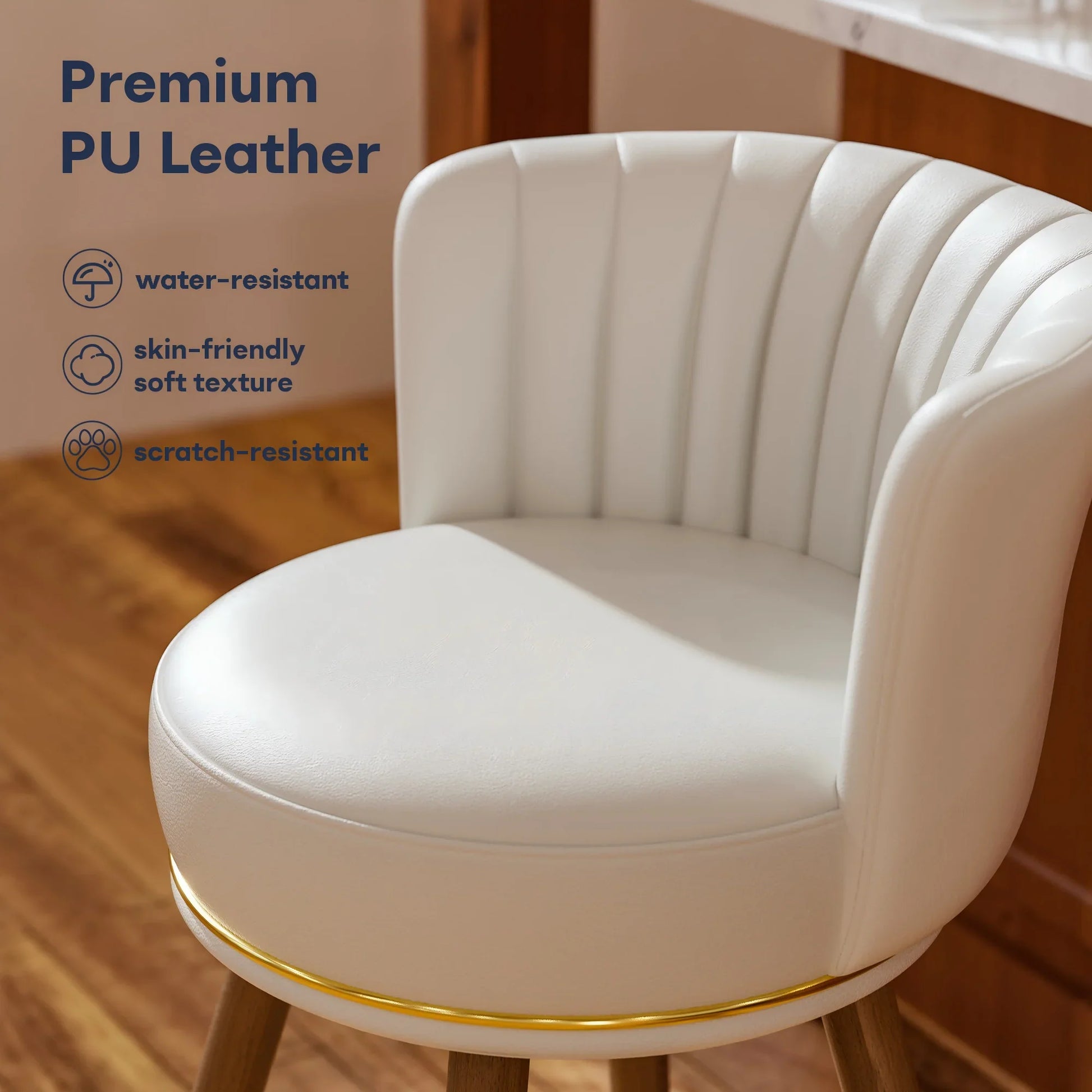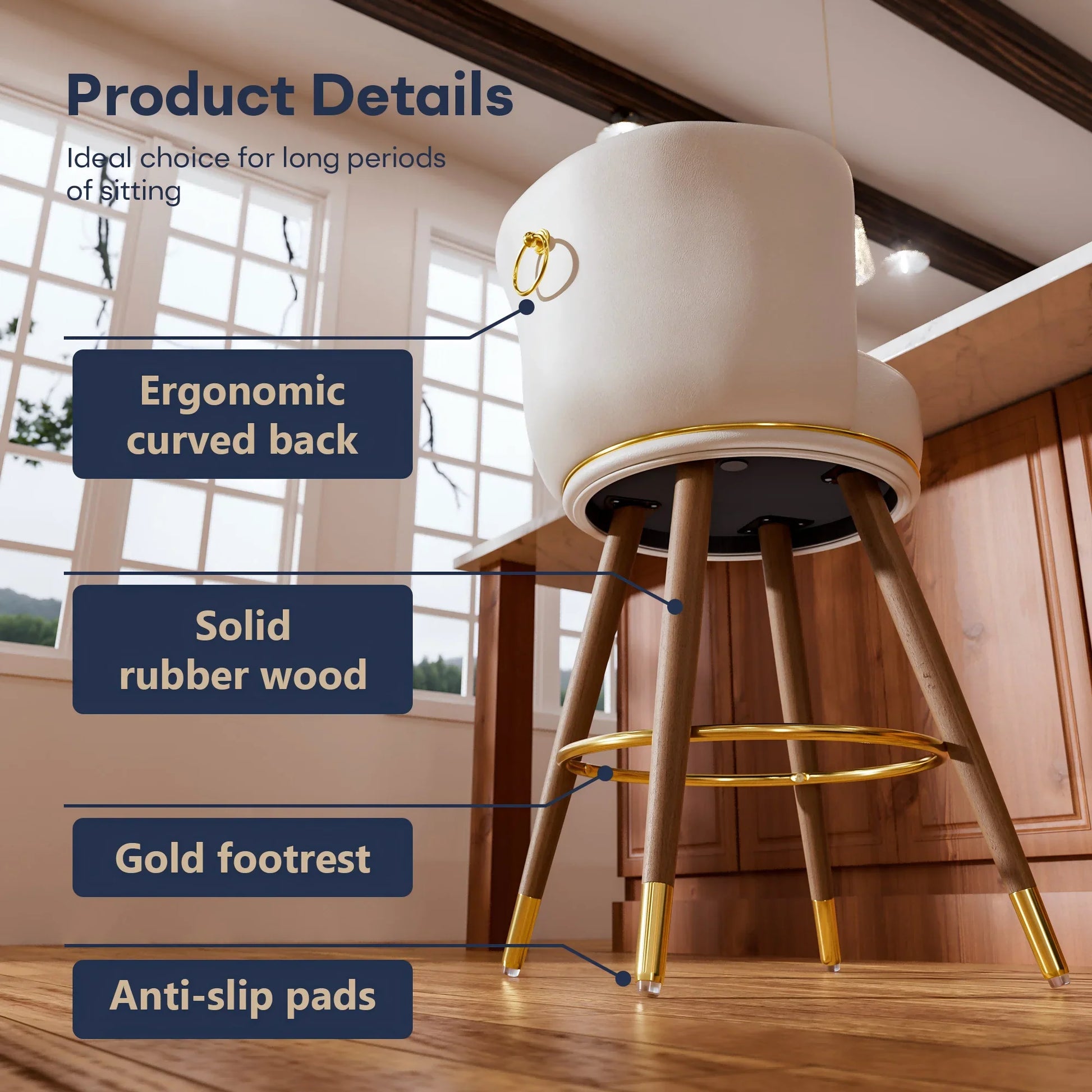 Discover the perfect blend of comfort and style with our Bar Stools Set of 4, ideal for kitchen islands. The wide seat cushion is made of durable leather and high-density foam for optimal comfort during extended use.With a sleek, low-back design and a contemporary round seat available in white, brown,gray,blue, this HomeZeer counter stools for kitchen island blends seamlessly into any decor. Standing at a versatile 24 inches high, it is perfect for counters and bars.The sturdy wooden legs counter stools also features a convenient footrest for added relaxation.The 360¡ã swivel feature provide users with greater freedom to easily rotate and participate in conversations or admire the surrounding environment, greatly enhancing the convenience and flexibility of social interactions.Upgrade your seating experience with these stylish and practical swivel bar stools with backrest, perfect for any kitchen island or bar area.
