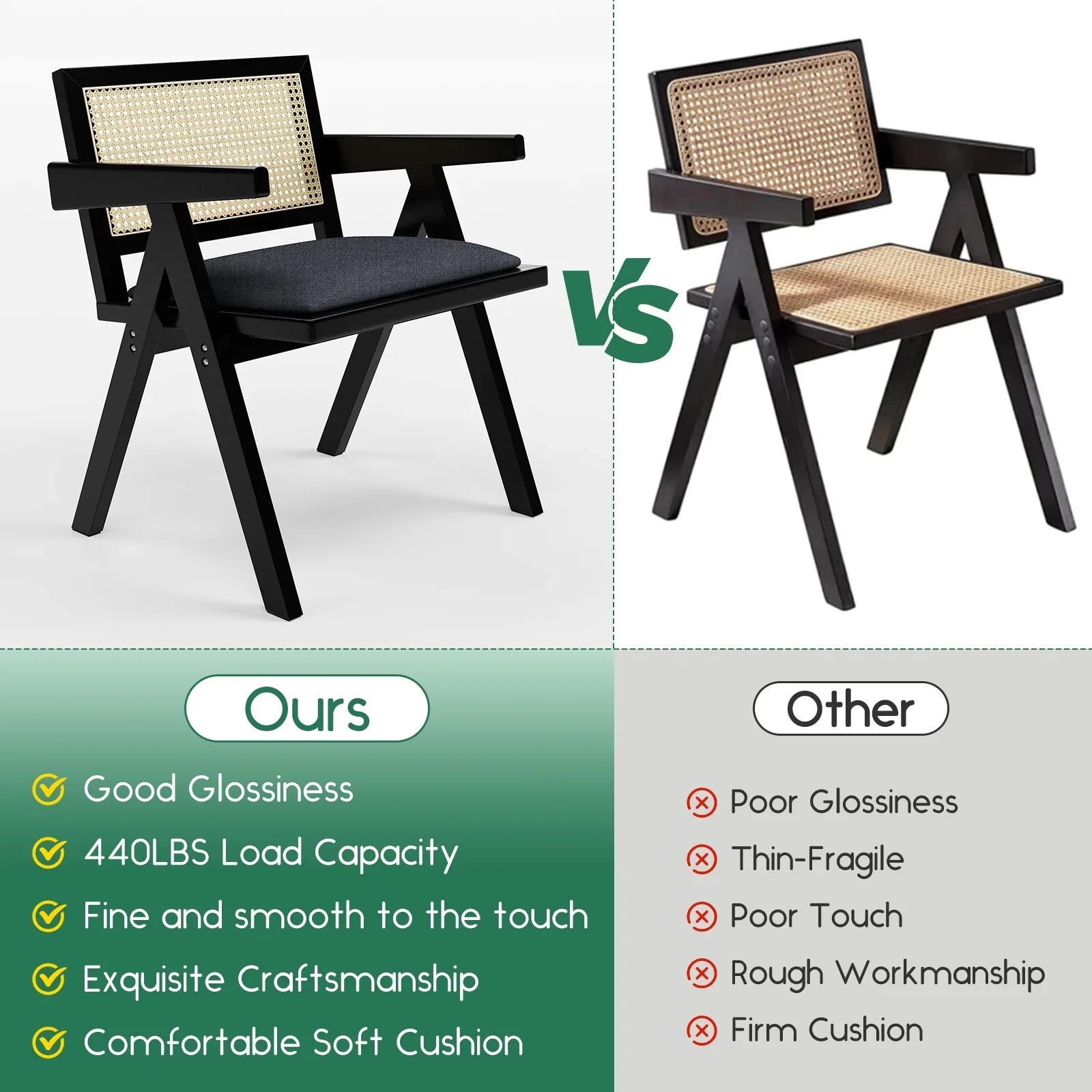 - Mid Century Style:The rattan dining chairs feature a mid century style, which imparts a timeless and charming touch to your house. Hence, it is an eye-catching presence in the kitchen, dining room, living room and other rooms.