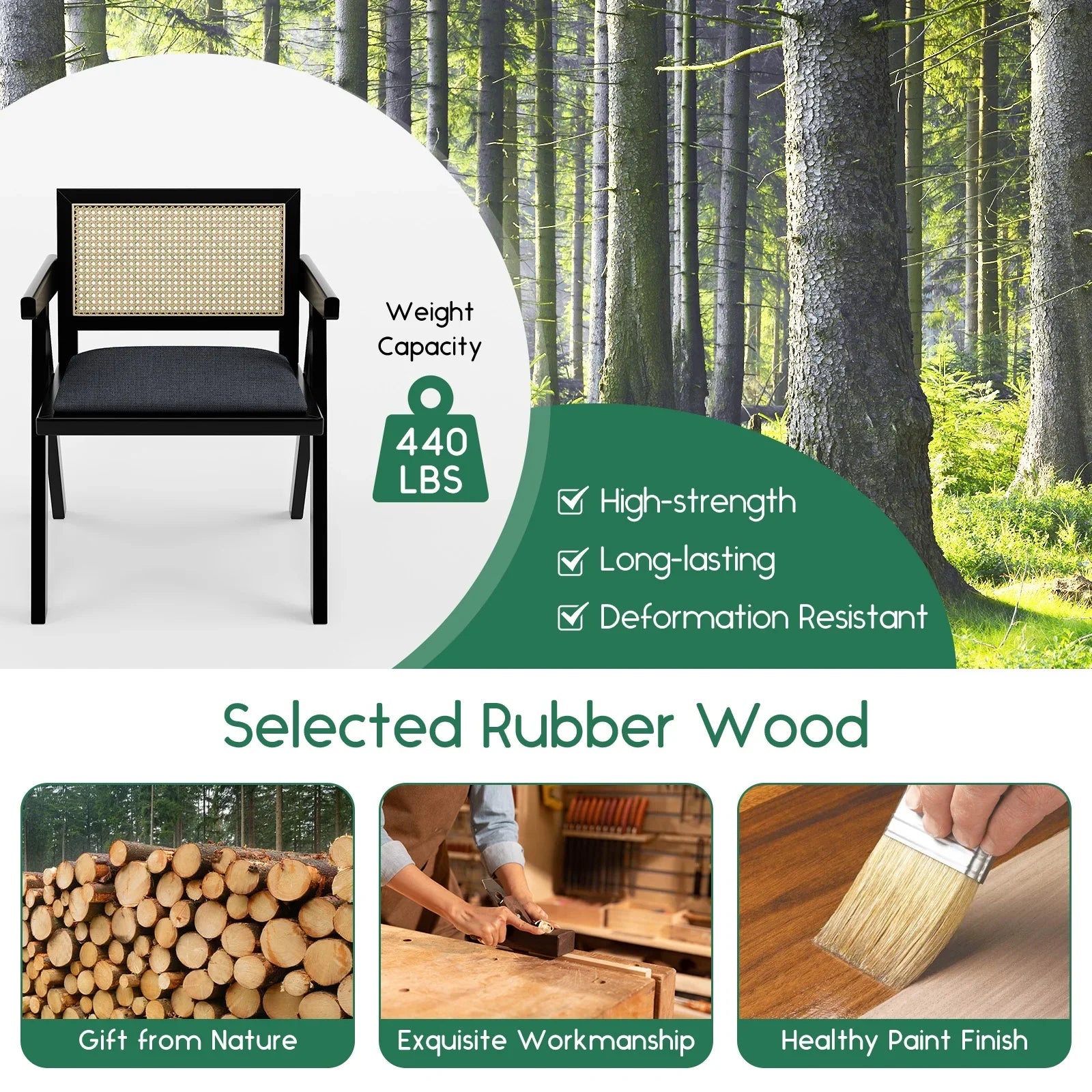 - Sturdy & Stable:Crafted from rubber solid wood, our dining room chairs boast exceptional hardness, high wear resistance, and a long service life. With a maximum weight capacity of 440lbs, they hold more weight than other wood dining chairs on the market, ensuring stability and durability.