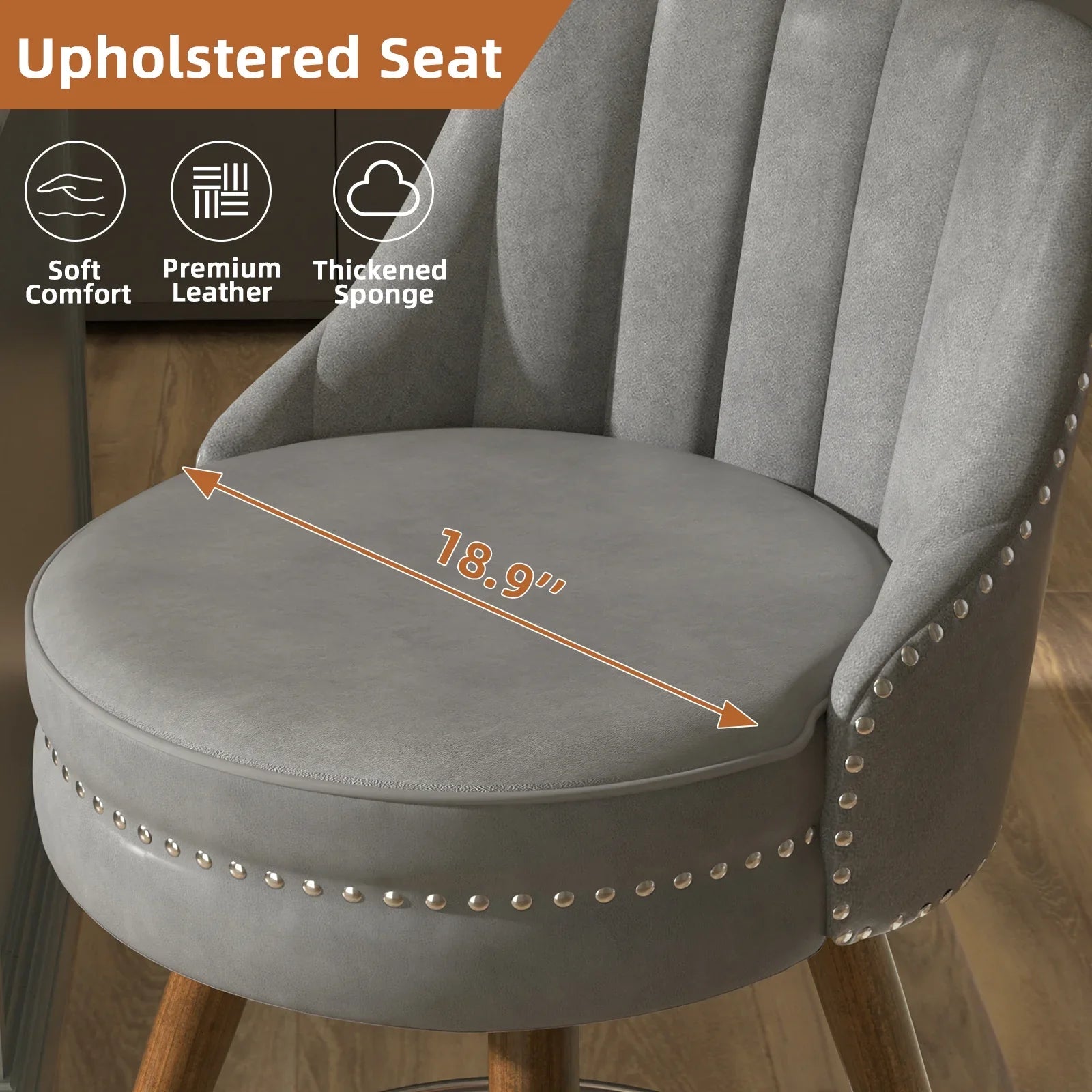 HomeZeer Bar Stools Set of 2, Counter Height Bar Stools with Back, Leather Swivel Counter Stools with Wood Legs and Footrest, Upholstered Pub Bar Stools Chairs for Kitchen Island, Grey
