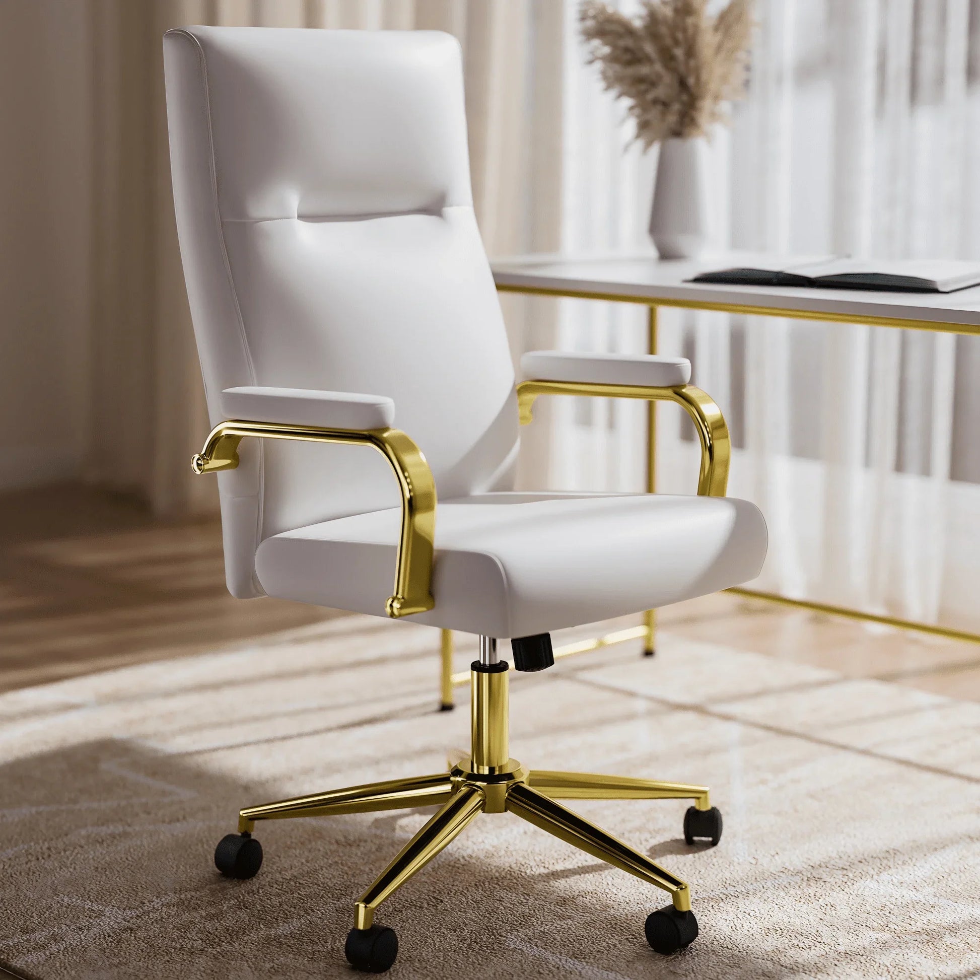 - Elegant High Back Design£ºElevate any office with our stylish white and gold desk, adding a touch of sophistication and elegance suitable for any home office chair environment.Our office chair white combines long-lasting durability with a sleek, sophisticated look, making it the ideal executive office chair white for any modern office.