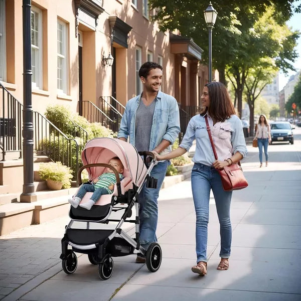 Convertible Baby Stroller: Reversible mode to meet various needs; High landscape protects baby away from car fumes; Forward seat for view outside; Backward mode promote parent-child interaction
