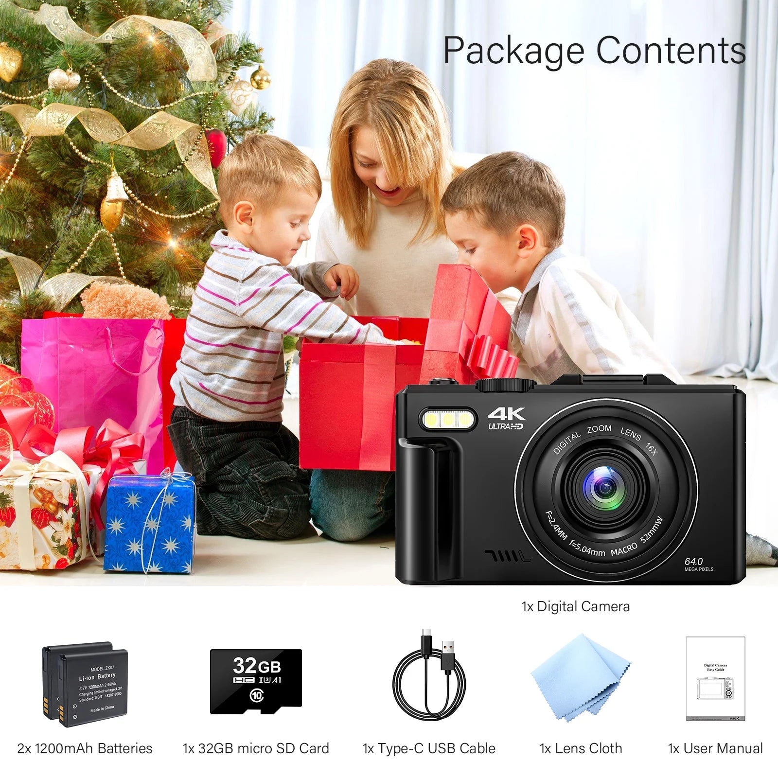- [Capture Stunning 4K Digital Camera] Record ultra-high-definition UHD (4K) videos at 30fps, ensuring crystal-clear footage for your vlogs, travel diaries, and family gatherings.