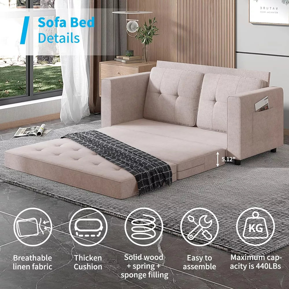 Mjkone Pull Out Sofa Bed, 3-in-1 Loveseat Sleeper Sofa Bed with 2 Pockets, 5.5" Tri-Fold Multi-Function Futon Sofa Bed, Convertible Fold Out Sofa Couch for Living Room/Apartment/Office