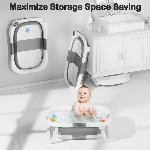 Napei Collapsible Baby Bathtub for Infants and Toddlers with Bath Net and Thermometer