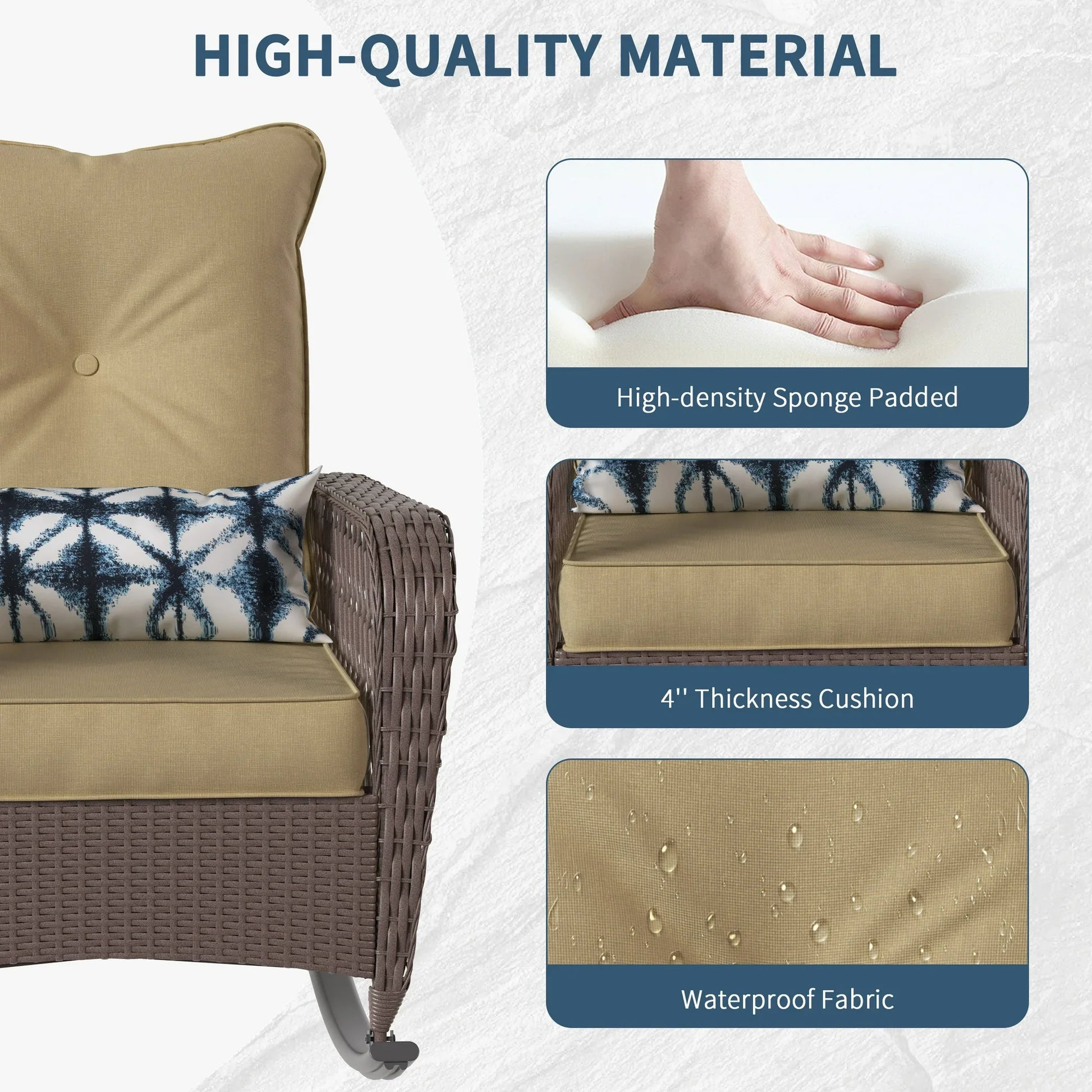Poteban 3-Piece Outdoor Rocking Chairs, Wicker Patio Furniture with Thickened Cushions and Table for Porch (Khaki)