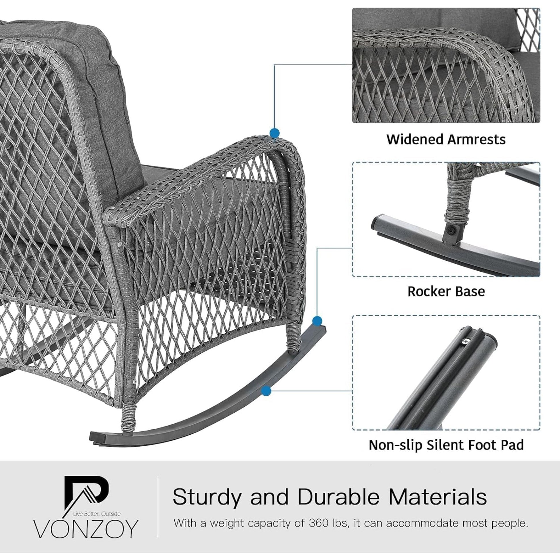 Poteban 3-Piece Outdoor Rocking Chairs, Wicker Patio Furniture with Thickened Cushions and Table for Porch(Light Gray)