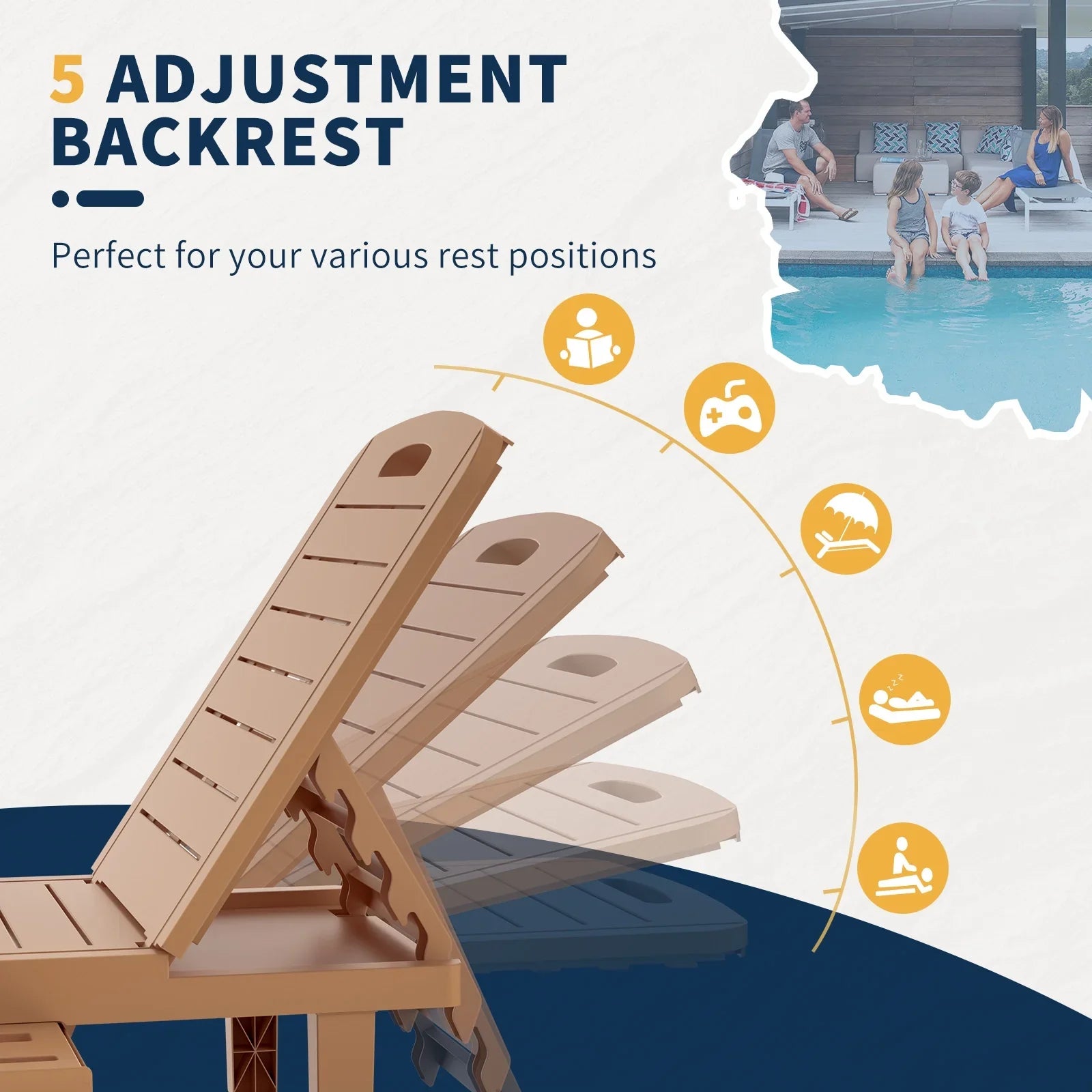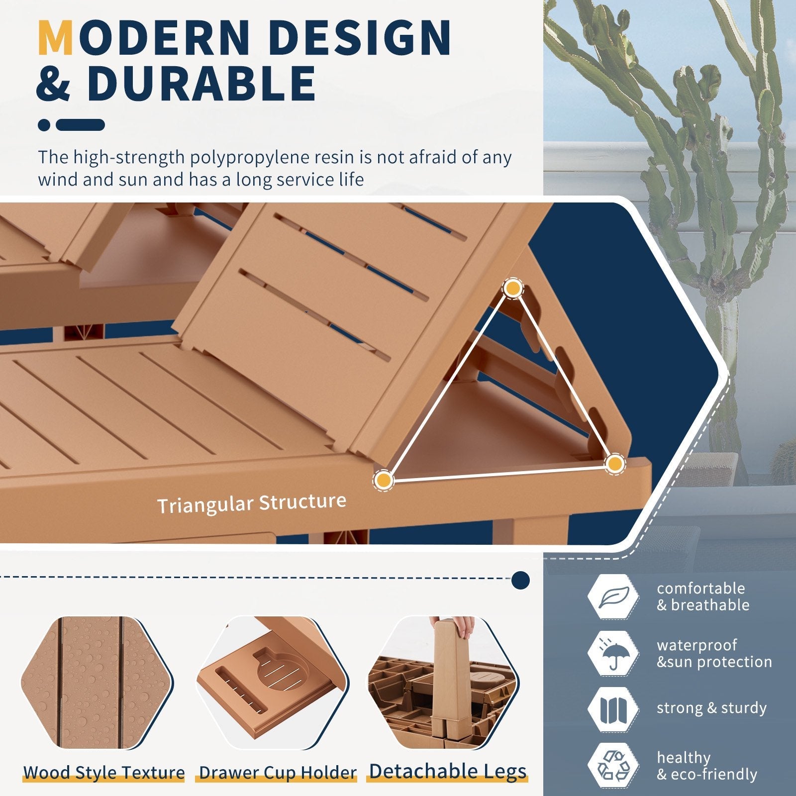 If you are tired of sitting on chairs in the office the whole day, then you will appreciate putting low-lying lounges in your backyard. You can imagine: lying on the our chaise in the warm sun, bathed in the warm natural wind. What a wonderful thing it is. This beautiful ECOPATIO outdoor chaise lounge set maintain the simple and natural style, and will be a perfect match for your backyard. Made of premium PP material, the surface is wood grain, fashionable and generous. This chaise lounge is weather resistant and durable. The back of the chaise lounge is adjustable, with 5 different angles available according to the need of individual user. Assembly instructions and hardware bags attached for user convenience.