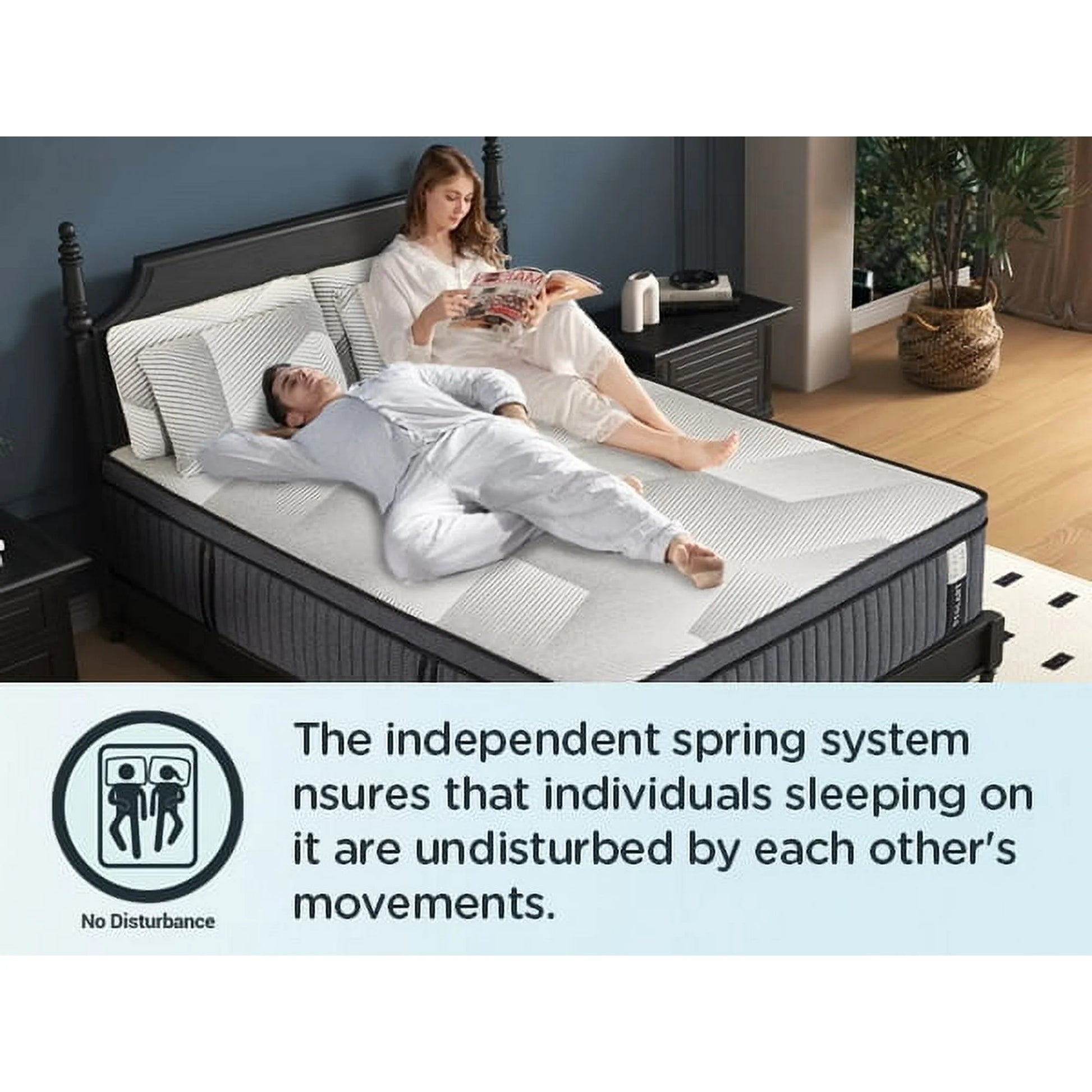 - [SUPPORT SYSTEM]: The hybrid mattress individually pocketed spring coils system provides powerful support to each part of your body (Feet, legs, hips, waist, back, shoulders, head), catering to your vertebral well. The mattress provides excellent edge support and motion isolation, ensuring that you won't feel any movement from your partner. Create an undisturbed and comfortable sleep for you and your partner.