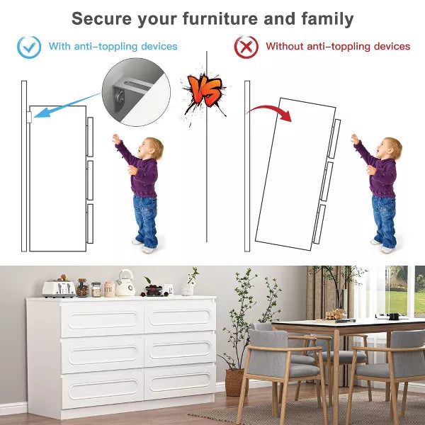 Strong gold leg and water-resistant wood top offer stable support and ensure years of use. Also, the storage drawer unit has anti-tipping accessories to prevent incidents.