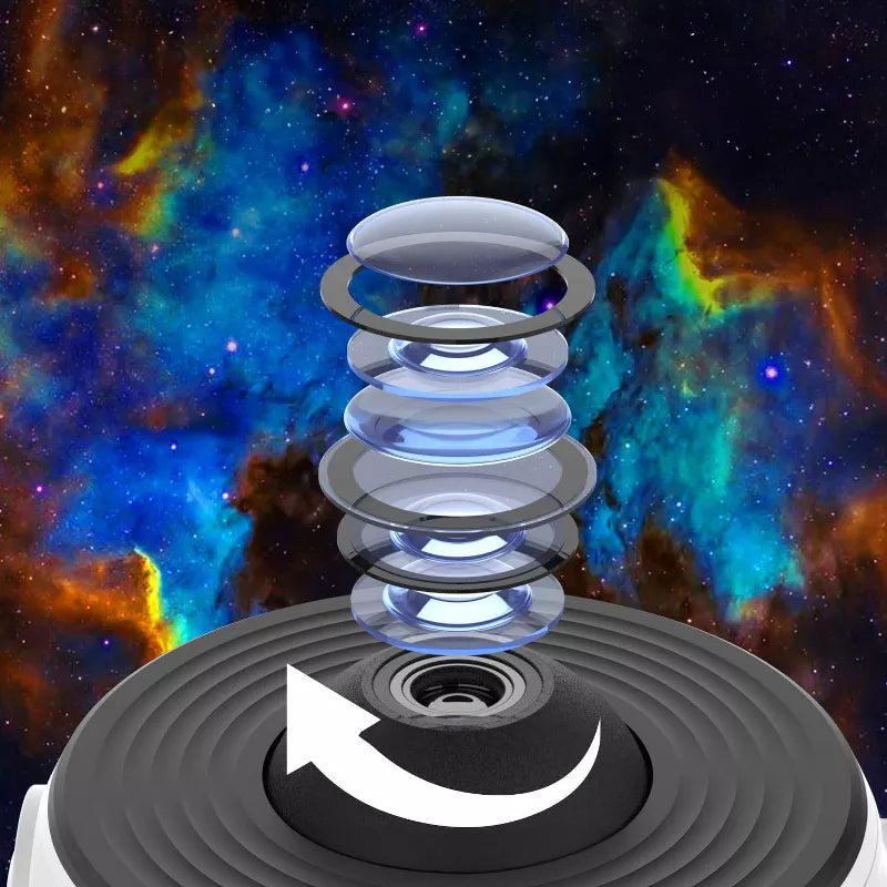 High-definition clarity: equipped with a top focal adjustment knob, this hd galaxy planetarium projector allows for precise focal length adjustments to achieve clear imaging, it supports a projection distance of up to 3 meters and covers a 135 sq. ft area, creating an immersive indoor starry light show.
