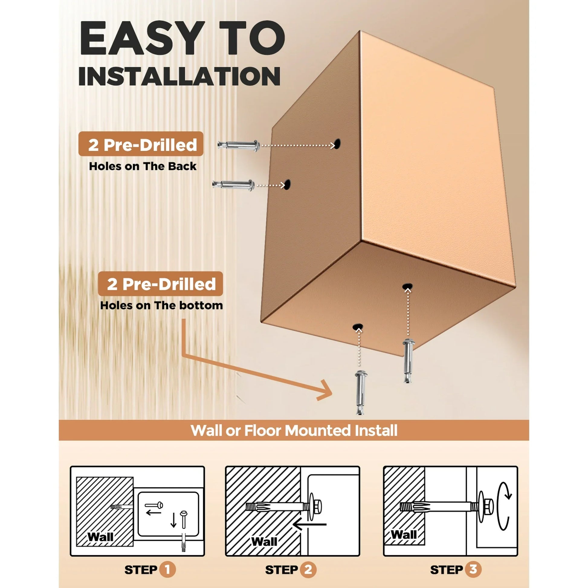 ??Heavy-duty Anti-theft Design: RXDSAFE safe is made of new upgraded reinforced solid steel material, equipped with a 64mm thick alloy anti-pry steel door and three 25mm thick high-strength solid lock bolts and anti-pry hidden hinges, which are very sturdy and durable, providing reliable protection for your valuables. Our fireproof safe has pre-drilled mounting holes on the back and bottom for wall and floor bolt fixing, which can effectively block thieves from smashing, drilling, and prying, prevent thieves and angry teenagers from taking your belongings, and protect your privacy.