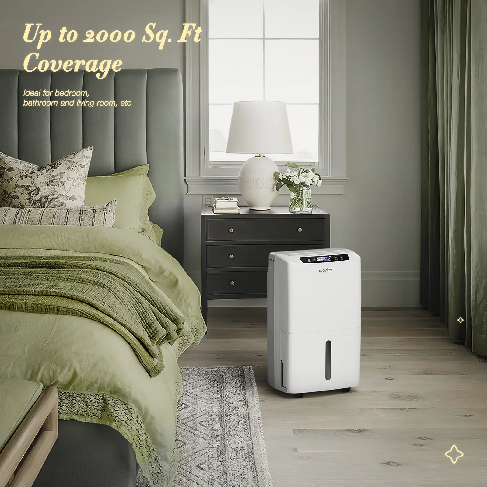 Dehumidifier for Space Up to 2000 Sq. Ft:?Our dehumidifiers are able to remove up to 34 pints (under 95¡ãF,95%RH condition) of moisture per day. (Please note: under 95¡ãF,95%RH condition,the max dehumidification capacity up to 34 pints) in areas up to 2000 Sq. Ft and adjust humidity from 30% to 80%.It is a dehumidifier ideal for any basements, office, home, bathroom, bedroom, kitchen, stockroom, living room, laundry room, cellars, crawlspace, etc..
