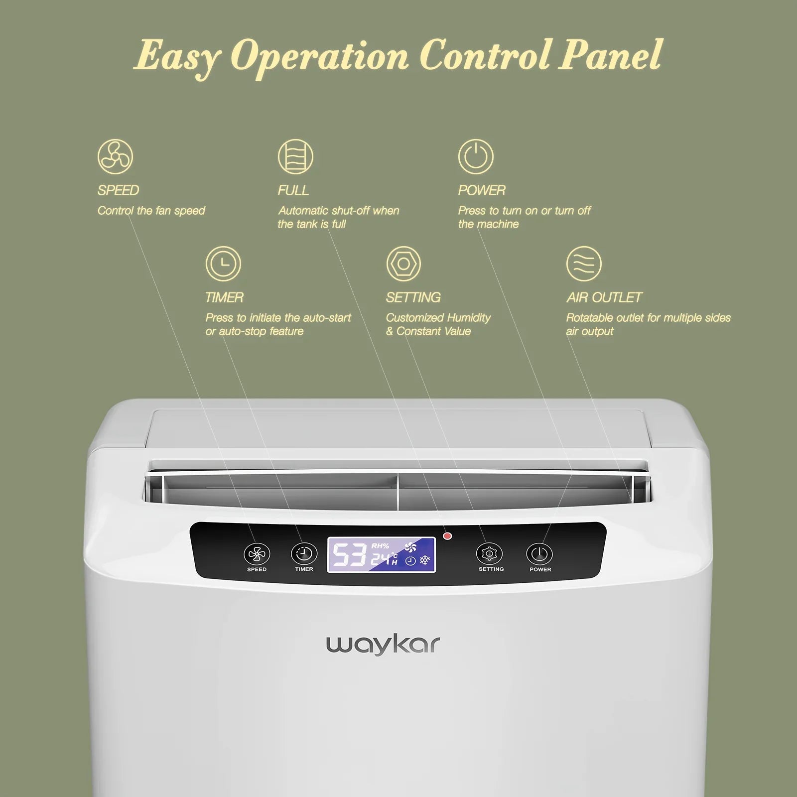- Unique Design for The Modern Home:?The Waykar dehumidifiers designed with modern look. With 360¡ã rotatable wheels and ergonomically lift up handles, you can move around this dehumidifier easily. A quiet fan that won't disturb you when you sleep or at work, adjustable fan speeds for multiple choices. 24-hour Timer Setting for preset operation and reduced energy consumption