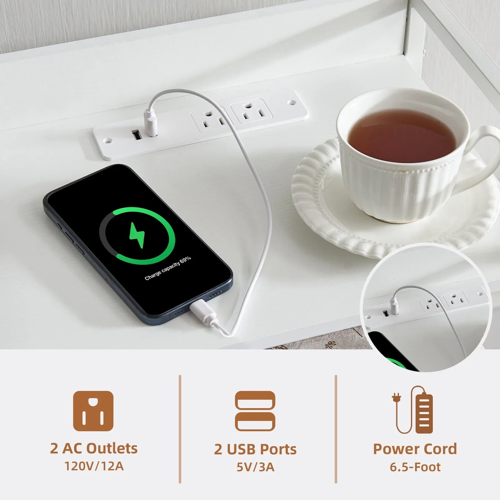 Convenient Somdot End Table With Charging Station and LED lights: with Type C, USB ports and 2 AC outlets, the side table can easily charge your phone or iPad. Bedside table with LED light is your faithful partner in falling asleep. Featured with 20 RGB colors, 22 dynamic modes, the LED light can adjust color, brightness by remote or APP as you go.