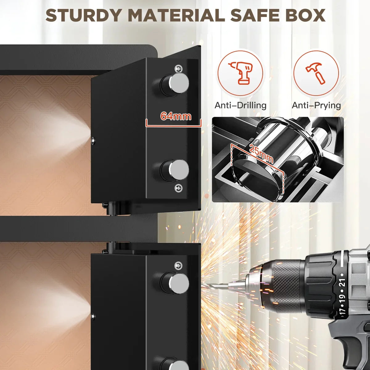 - Heavy Duty Anti-theft Design & Safe Protection: TNTANTS safe is made of a new upgraded reinforced solid steel material, equipped with a 64mm thick alloy anti-pry steel door, 4 25mm high-strength solid lock bolts, and anti-pry hidden hinges. It is very sturdy and durable, providing reliable protection for your valuables. Our safe pre-drilled mounting holes on the back and bottom for wall and floor bolt fixing can effectively block thieves from smashing, drilling, and prying, preventing thieves and angry teenagers from taking your belongings and protecting your privacy.