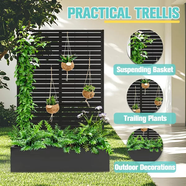 This Metal Raised Garden Bed is the perfect addition to any outdoor space, designed with durability and functionality in mind. Crafted from high-quality galvanized steel, it is built to withstand harsh weather conditions, ensuring long-lasting performance. The trellis offers excellent support for climbing plants, vegetables, and vines, promoting healthy growth and maximizing vertical space in your garden.