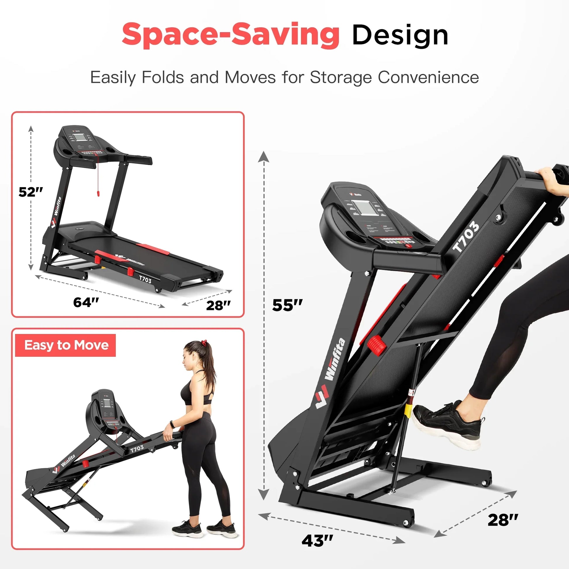- ¡¾Easy Assemble & Space Saver Design¡¿The treadmill arrives 95% assembled, you only need to tighten a few screws to install. Storage with convenient transportation wheels of folded exercise treadmill make it easy to move and store treadmill.