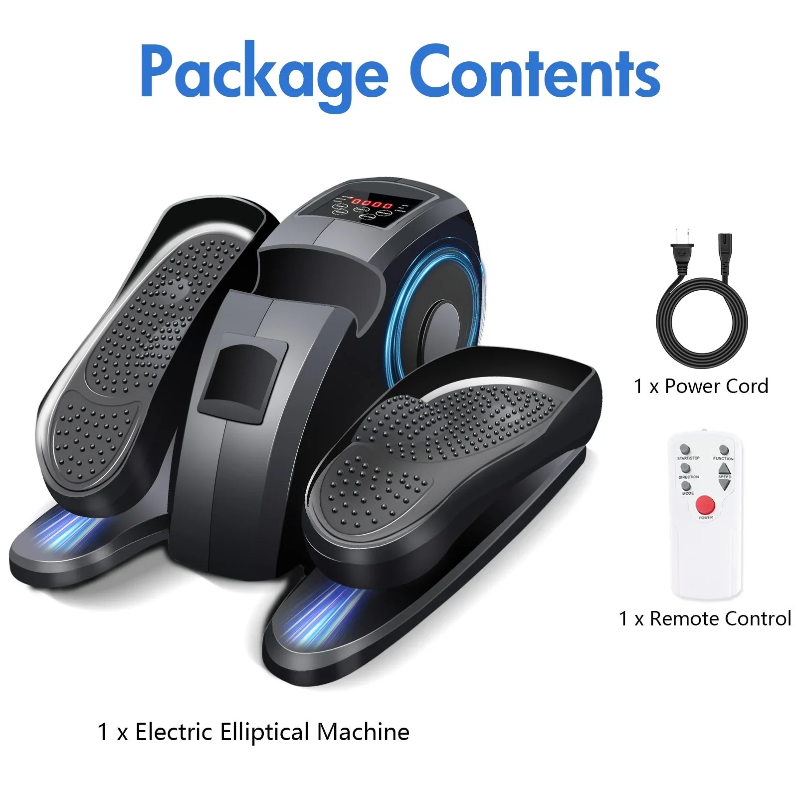 1 x power cord, 1 x English manual, 1 x electric elliptical machine
