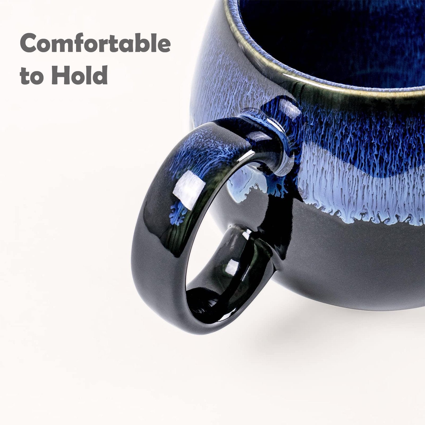 Ceramic coffee mugs set are 3.4 inch wide (in diameter) and 4.25 inch depth,suitable for cereal, coffee, tea, cocoa, beer,or other beverages. Large capacity with great shape will meet all of your need for serving different kinds of food.