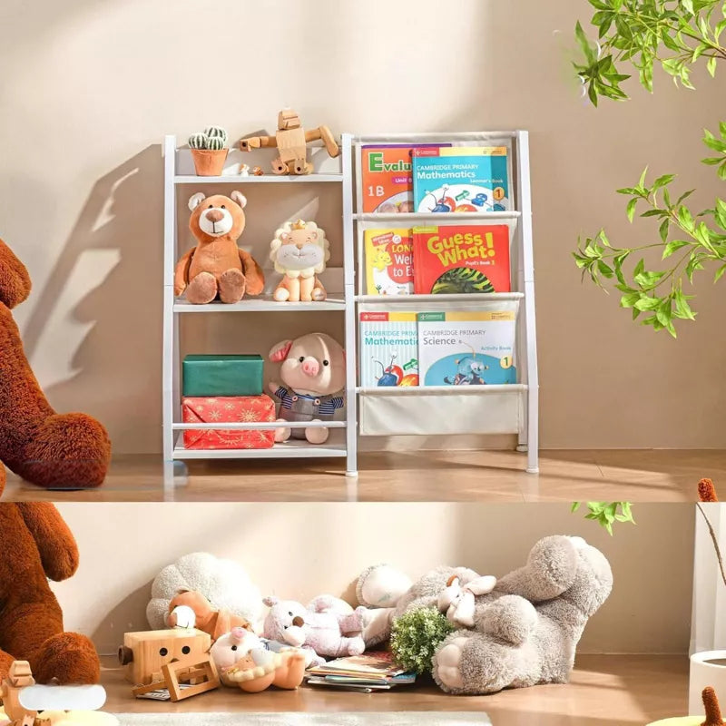 Perfect for Kids' Rooms: Designed for young children, this bookshelf combines storage shelves and organizer pockets to keep books and toys neatly arranged