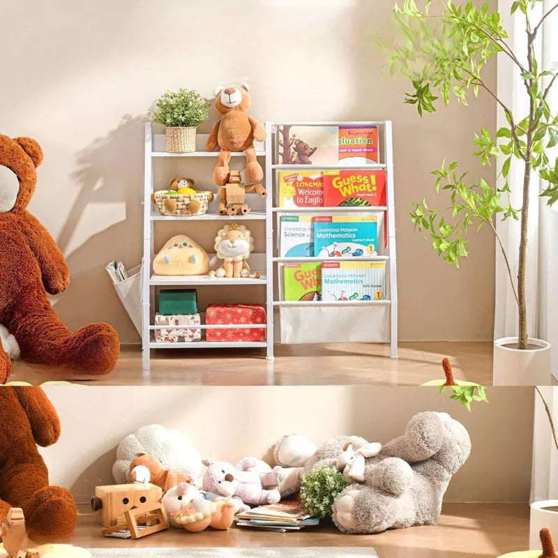 Kid-Friendly Design: This toddler bookshelf features both shelves and pockets, offering easy access to books and toys while keeping the room neat and tidy