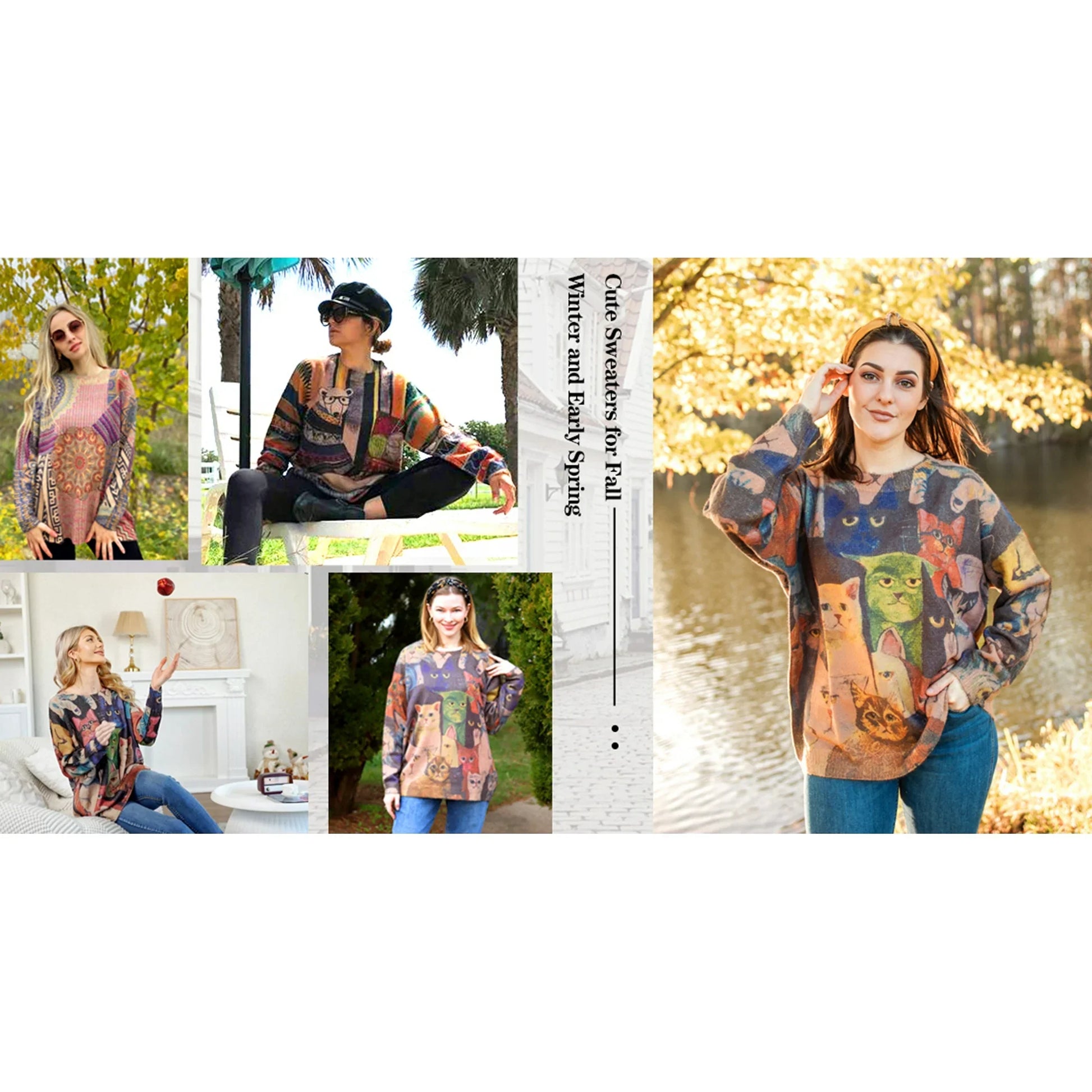 🍀【Features】This graphic pullover sweater is both beautiful and soft. The colors are vibrant and the fit is loose but flattering. The pattern and colors are exactly as depict, down to the design being exactly where it is show to be place. This womens tops are warm and comfy, the graphics are great and the fit is perfect. The oversized design adds to its comfort, allowing for plenty of room to move around without feeling restricted. It's the perfect piece for lounging around at home or running errands on a chilly day. These women sweaters are beautiful, warm & soft, they are all knit and have stretch, the print is richly colored and pretty true to what depict, the colors are vibrant than the picture, beautiful and cute. The casual sweaters are unique and comfortable, it's well made as it's hold up nicely without pilling or shape loss after several wears.
