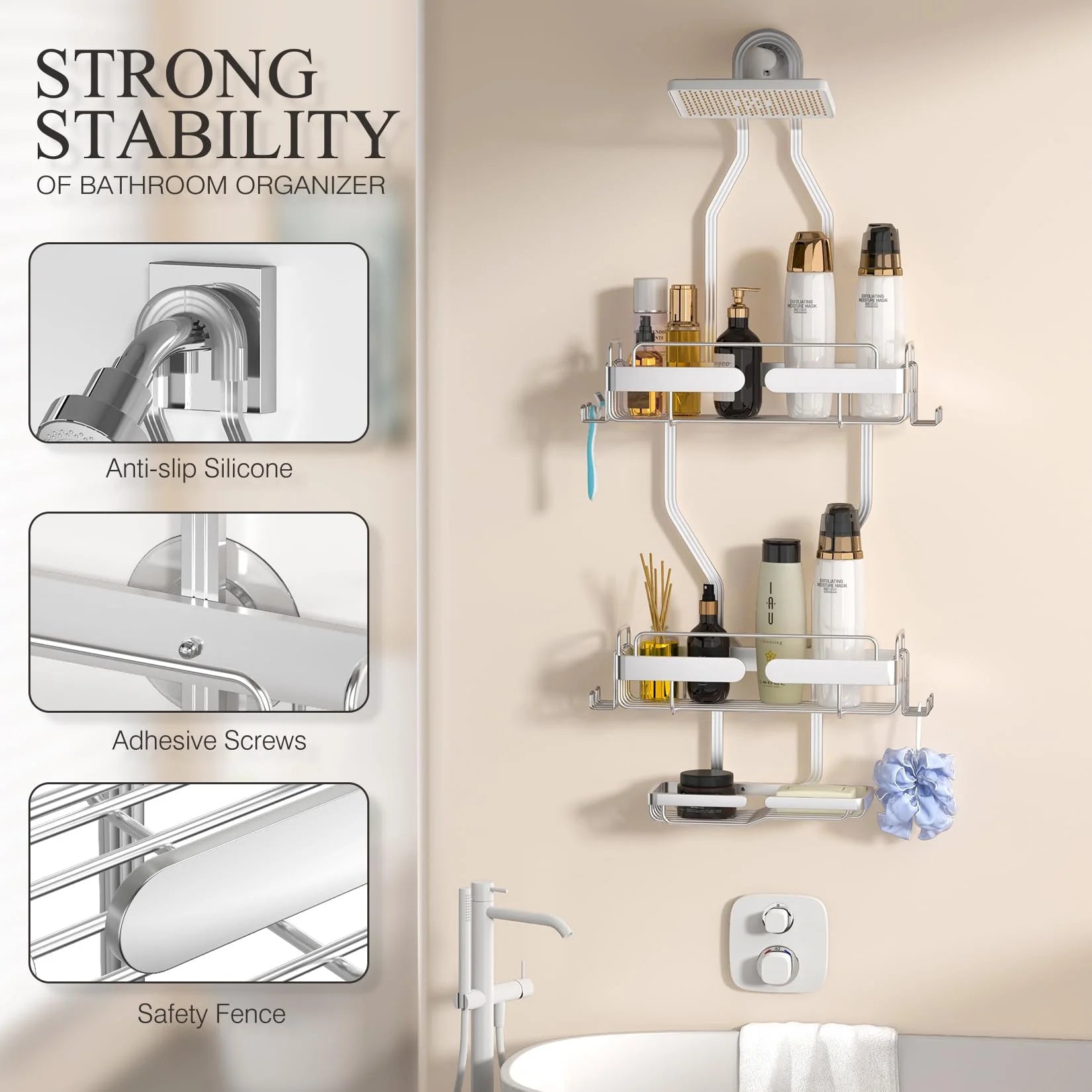 - Easy to Hang Overhead - This hanging shower caddy features a non slip clamp that securely locks over the showerhead, ensuring stability with removable anti swing hooks.
